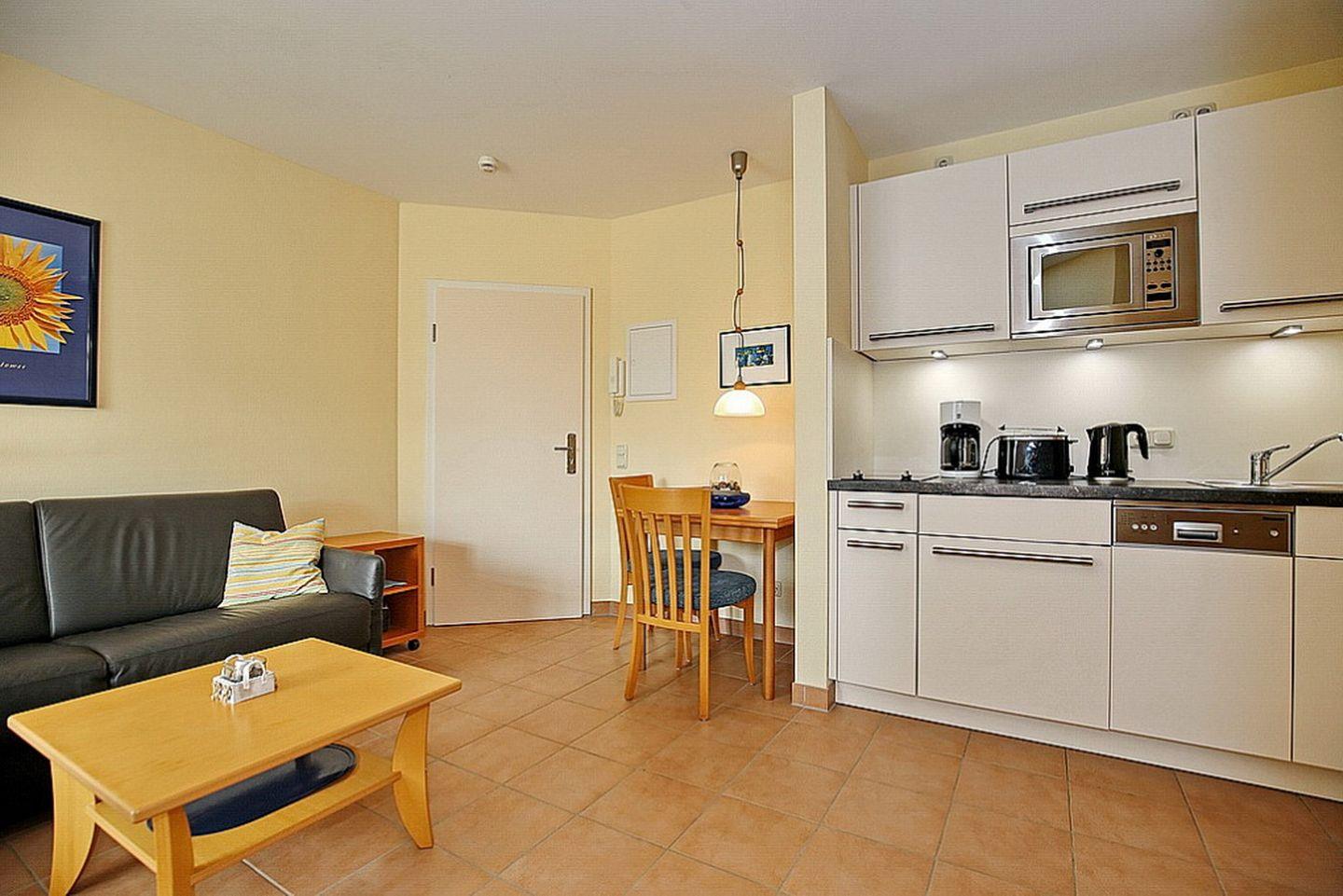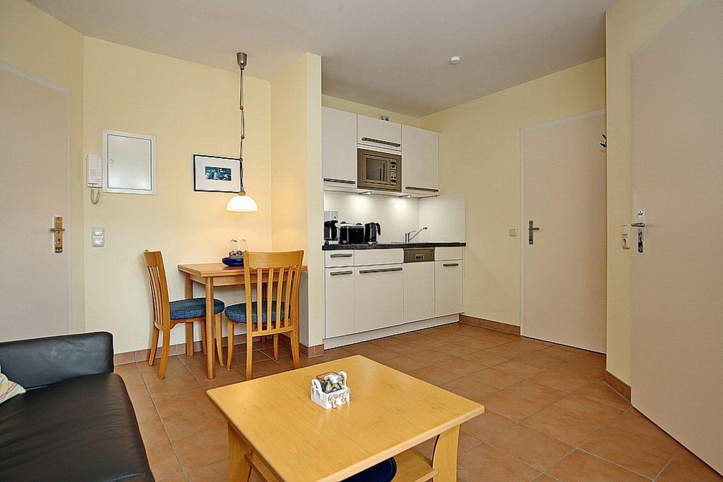 Die 2-Zimmer-Ferienwohnung 10 im 1. Obergeschoss der Anlage "Schaumburg" bietet auf 30 m² platz für bis zu 3 Personen. Das Haus verfügt über Münzwaschmaschinen und -trockner und einem Fahrradkeller.