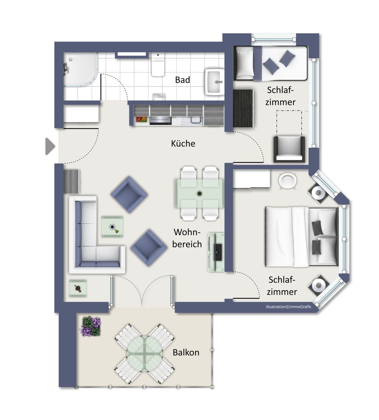 Die Ferienwohnung 41 im Haus 1 des “Dünenschloss” in Kühlungsborn ist eine 3-Zimmer-Wohnung für bis zu 4 Personen.