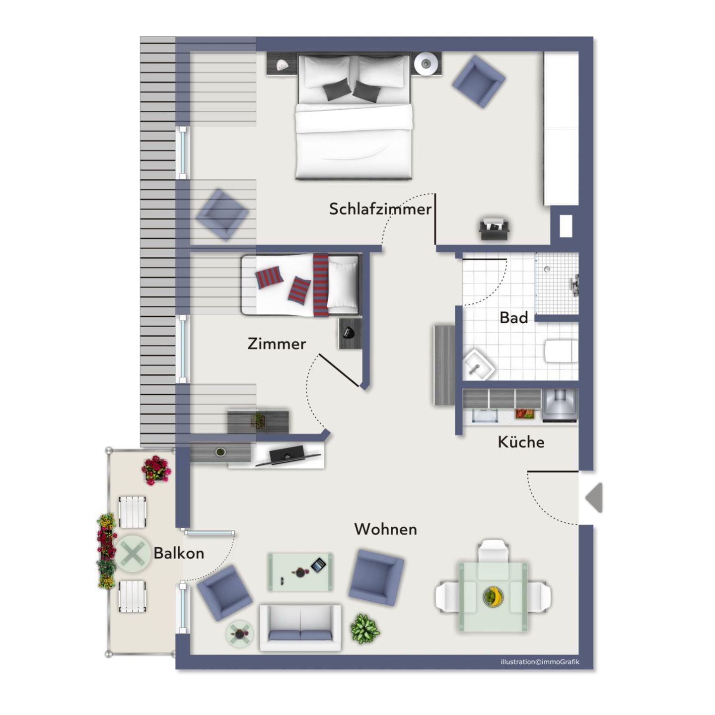 Deine sehr freundliche und hell gestaltete 3-Zimmer-Ferienwohnung befindet sich im 3. Obergeschoss des Hauses Ostseewelle. Die Wohnung bietet auf 45 m² bis zu 4 Personen Platz für einen erholsamen Urlaub und lädt direkt zum Wohlfühlen ein. Die Wohnung ist perfekt aufgeteilt und gliedert sich für dich in einen Wohn- und Essbereich, eine separate Küchenzeile sowie zwei Schlafzimmer und ein Duschbad. Auf dem Südbalkon kannst du Tag für Tag die Seele baumeln lassen.