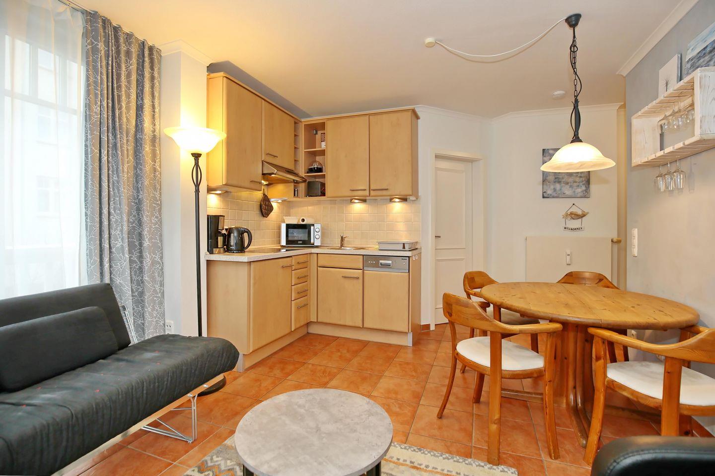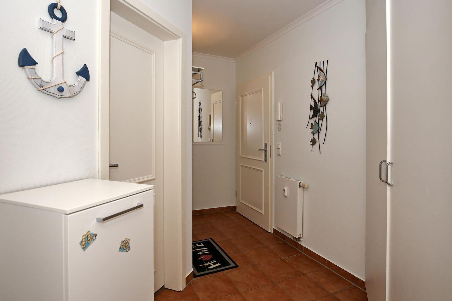 Die Ferienwohnung befindet sich im 1. Obergeschoss. Sie ist in einen Wohn- und Essbereich, eine Küchenzeile, zwei Schlafzimmer und ein Duschbad aufgeteilt. Auf dem nach Süden ausgerichteten großzügigen Balkon kannst du gemütliche Abende verbringen. Bis zum feinsandigen Strand gehst du nur 50 Meter.