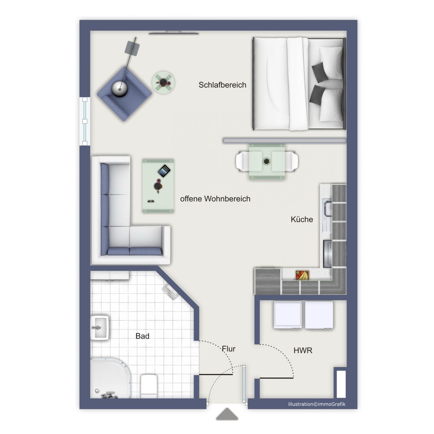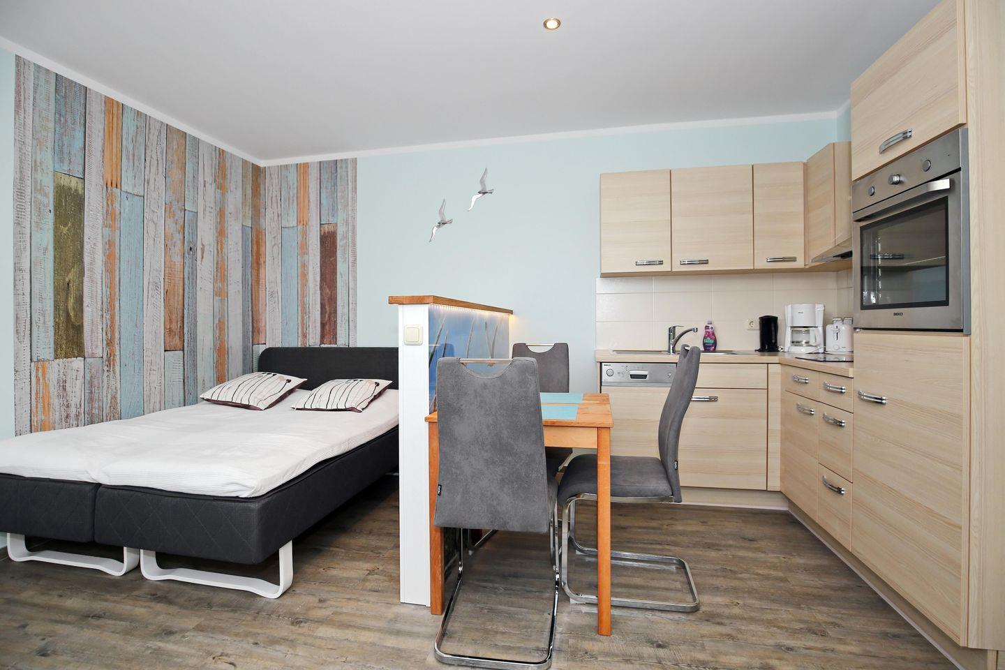 Die Ferienwohnung Nr. 30 in der Ferienanlage „Strandstraße 43“ ist eine 1-Zimmer-Ferienwohnung für bis zu 2 Personen.
