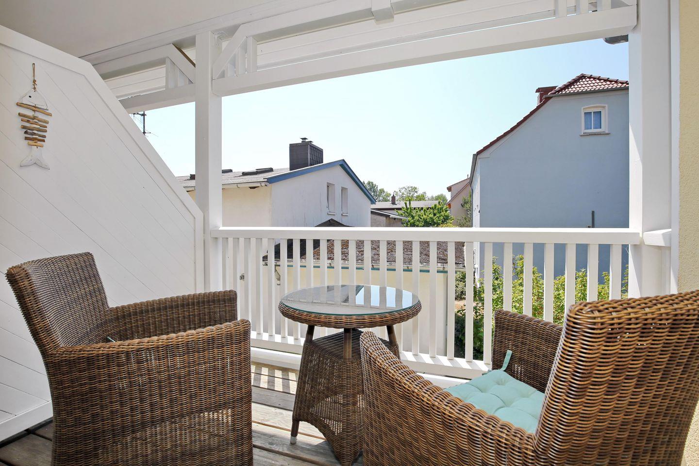 Die 2-Zimmer-Ferienwohnung in Kühlungsborn West befindet sich im 1. OG der Anlage „Schaumburg“ und bietet auf 37 m² bis zu 4 Personen Platz für gemeinsame Urlaubstage. Der Balkon zeigt zur Südseite. Die Wohnung ist in einen Wohn- und Essbereich, ein Schlafzimmer sowie ein Duschbad und eine Küchenzeile aufgeteilt.