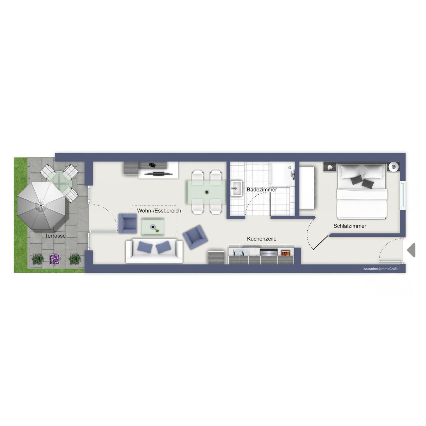 Die zum Wohnbereich angrenzende Küchenzeile ist für dich mit einem Kühlschrank mit Gefrierfach, einem Geschirrspüler sowie einem Backofen mit 4-Platten-Cerankochfeld gut ausgestattet. Technische Helfer, wie ein Toaster, eine Mikrowelle, eine Filterkaffeemaschine und ein Wasserkocher, fehlen hier natürlich nicht.