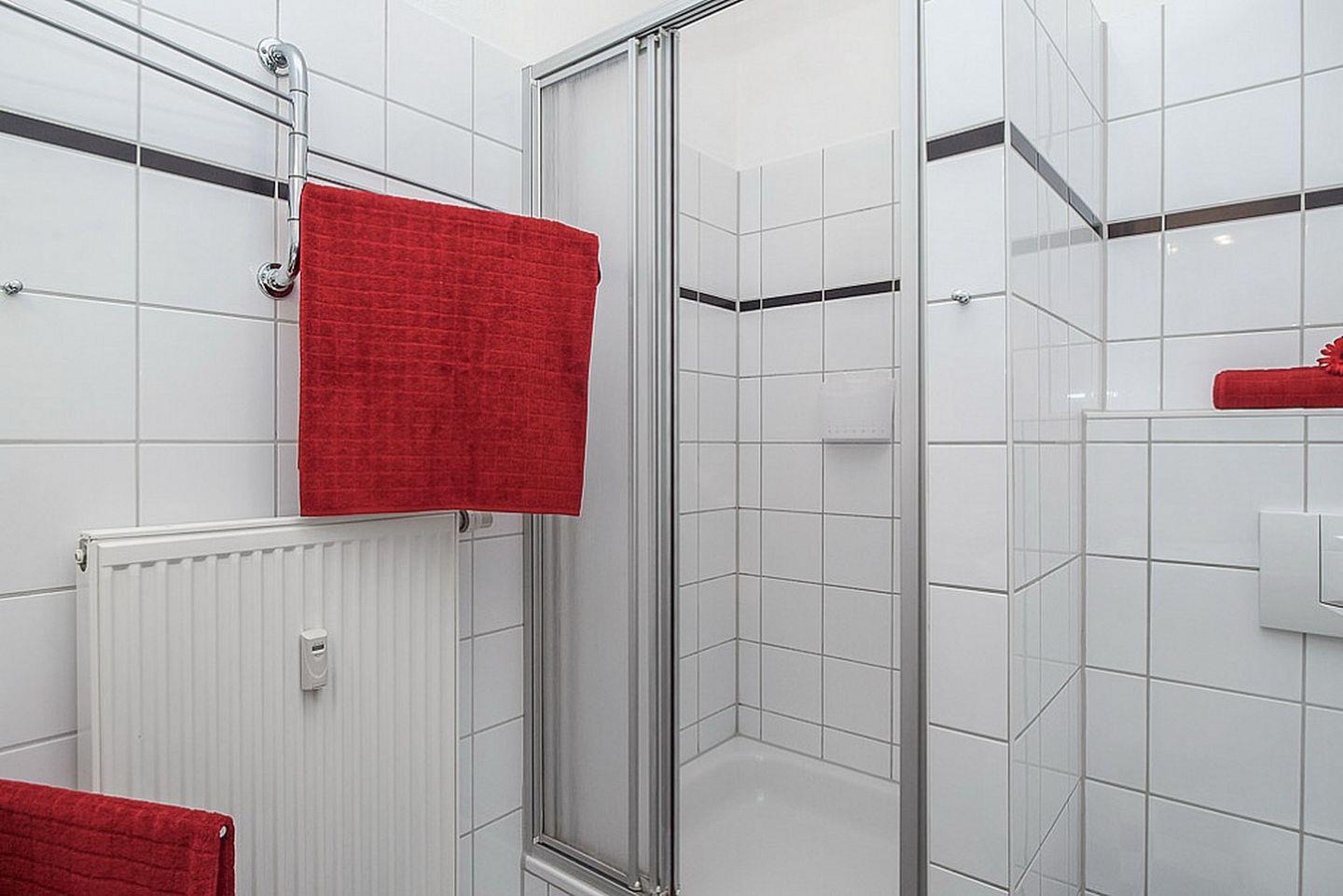 Die Ferienwohnung verfügt über ein Duschbad mit WC. Der großzügige Waschtisch und ein Unterschrank bieten genügend Platz für deine Waschutensilien. Ein Föhn und ein Kosmetikspiegel komplettieren die Ausstattung des Bades. Der Nass- und Küchenbereich ist gefliest. Im Wohn- und im Schlafzimmer ist Teppichboden verlegt. In dieser Nichtraucherwohnung sind Haustiere nicht erlaubt.