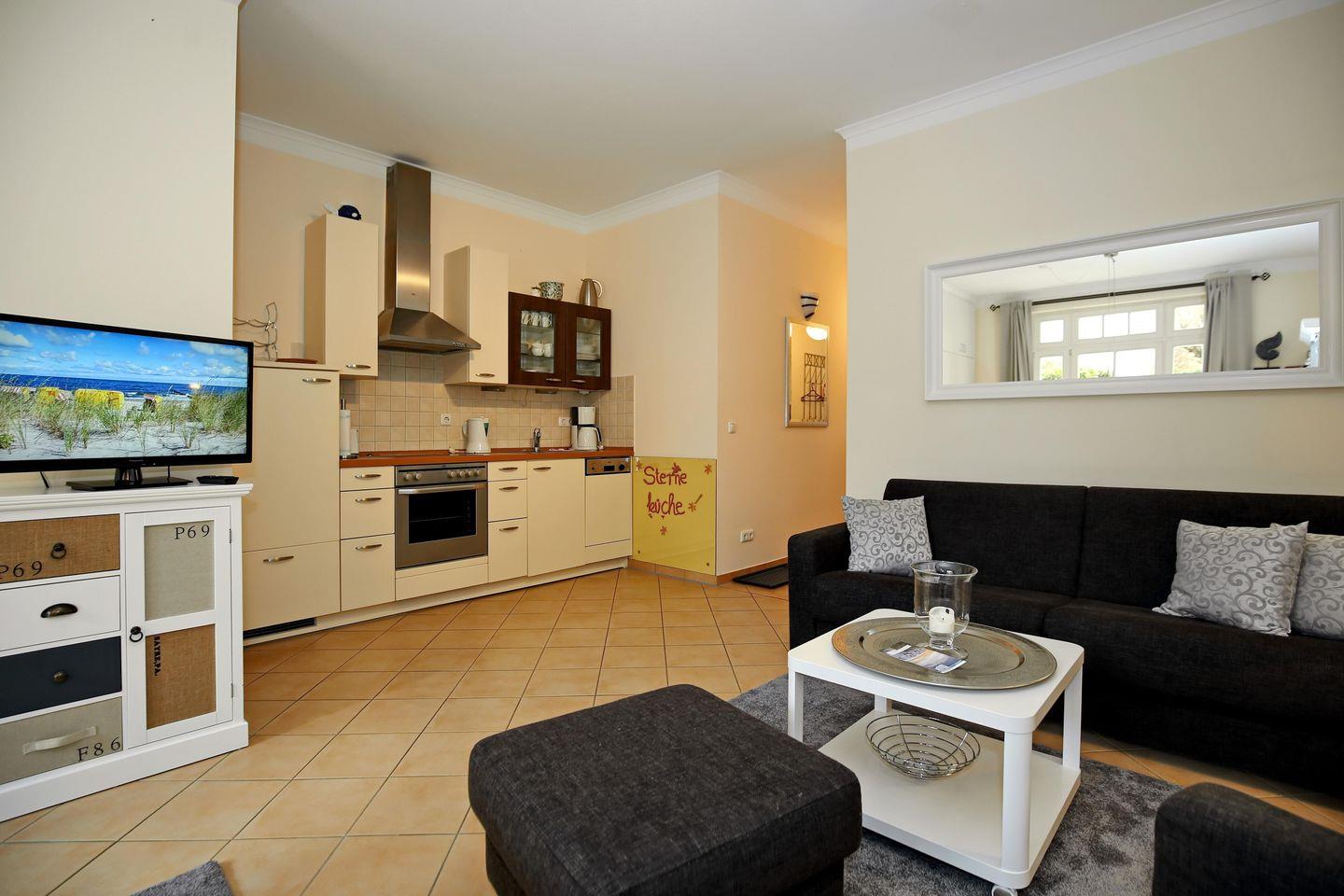 Die Ferienwohnung 5 im Haus 1 des „Dünenschloss“ in Kühlungsborn ist eine 2-Zimmer-Wohnung für bis zu 4 Personen.