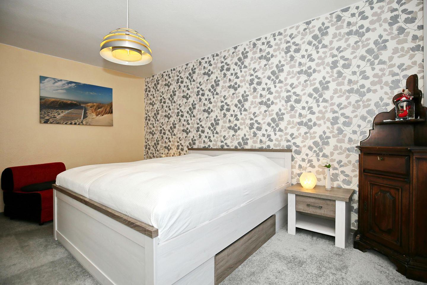 Im Schlafzimmer lädt dich ein komfortables Doppelbett (2 x 90 x 200 cm) zur erholsamen Nachtruhe ein. Dein Urlaubsgepäck kannst du im großen Kleiderschrank verstauen. Vorhänge dienen dir hier als Sichtschutz oder zum Verdunkeln. Die Doppelschlafcouch im Wohnbereich kann mit wenigen Handgriffen in eine Schlafmöglichkeit für 2 weitere Personen umgewandelt werden.