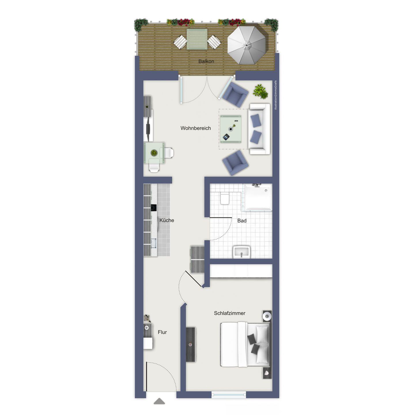 Die Ferienwohnung 303 in der Ferienanlage Meeresblick ist eine 2-Zimmer-Wohnung für bis zu 3 Personen.