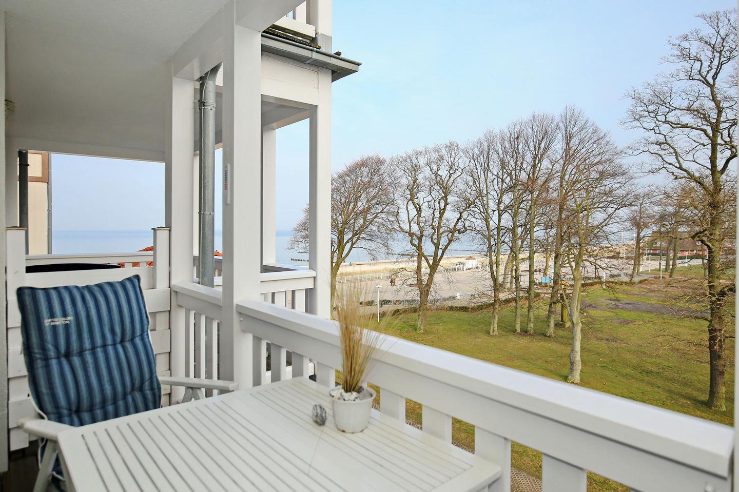 Die Ferienwohnung Nr. 303 in der Ferienanlage Meeresblick ist eine 2-Zimmer-Wohnung für bis zu 3 Personen. Die Wohnung liegt in der 3. Etage auf der Ostseite des Hauses und verfügt über einen Balkon, von dem Sie einen Blick auf die Ostsee haben.