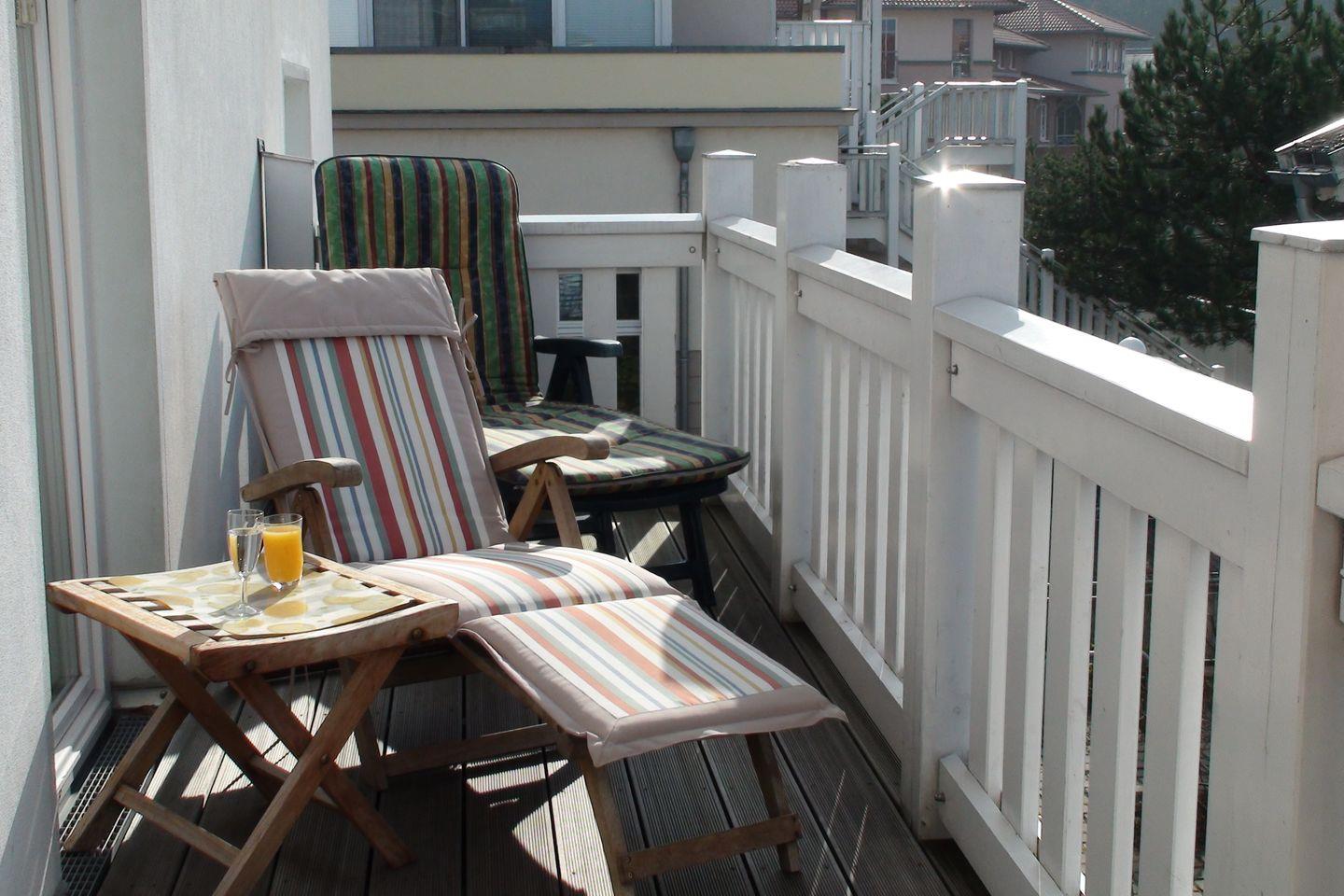 Die Ferienwohnung Nr. 06 in der zentralen Ferienanlage Strandstraße 16 in Kühlungsborn ist eine 2-Zimmer-Wohnung für bis zu 4 Personen. Die Wohnung liegt im 1. Obergeschoss und verfügt über einen Balkon.