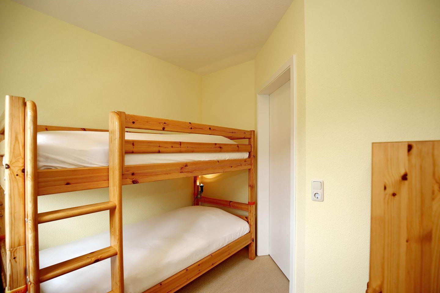 Erholen kannst du dich im ersten Schlafzimmer auf dem großen Doppelbett (2 x 80 x 200 cm) oder im zweiten Schlafzimmer im Etagenbett (90 x 200 cm). In beiden Schlafzimmern der Ferienwohnung gibt es Kleiderschränke, in denen du deine Garderobe unterbringen kannst. Zur Verdunklung gibt es Rollos an den Fenstern.