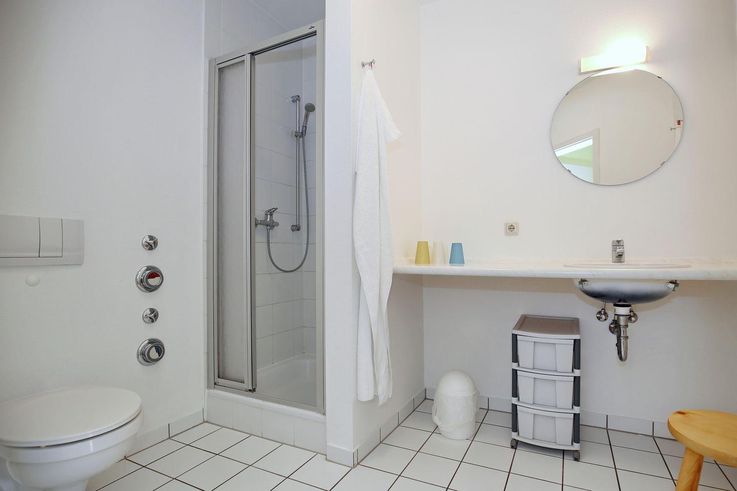 Selbstverständlich verfügt die Ferienwohnung über ein Duschbad/WC. In den Nassbereichen wurden Fliesen verlegt. Im Kinderzimmer wurde Auslegware verwendet und in der restlichen Wohnung findest du einen Vinyl-Boden vor.