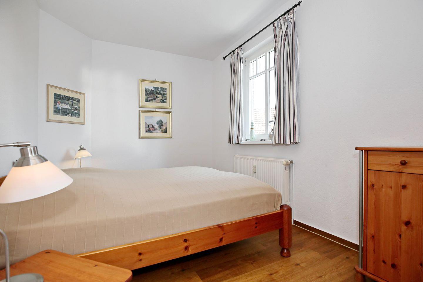 Ausruhen kannst du dich in einem der beiden Schlafzimmer der Ferienwohnung. Im ersten Schlafzimmer steht ein Doppelbett (2 x 80 cm x 200 cm) und im zweiten ein Etagenbett (90 cm x 190 cm). In den Kleiderschränken kannst du deine Reiseutensilien bequem verstauen. Zur Verdunklung gibt es Vorhänge an den Fenstern.
