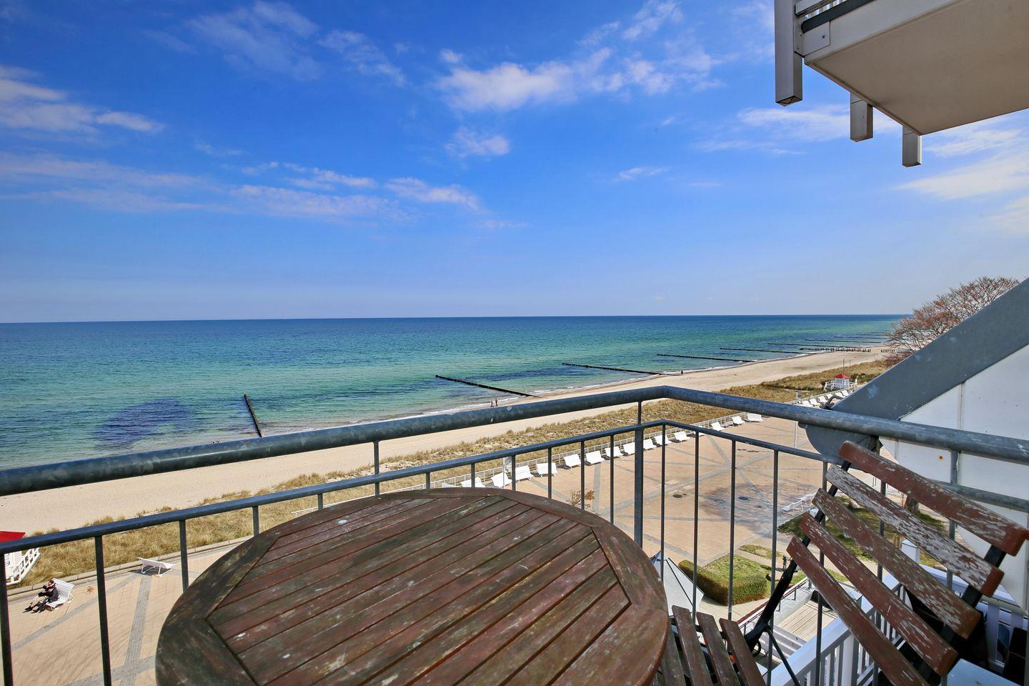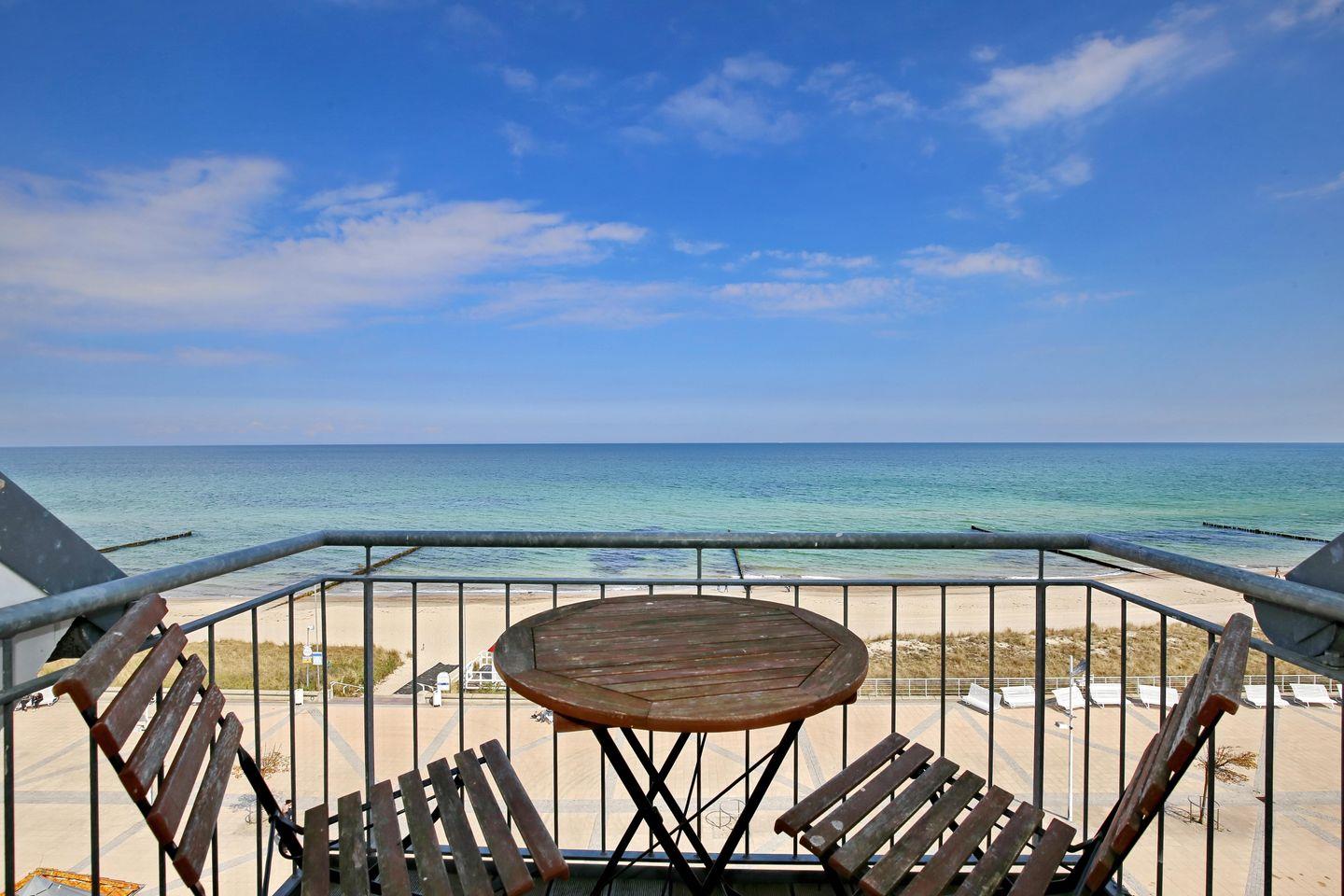 Das Apartment Nr. 513 in der Ferienanlage Meeresblick ist eine 2-Zimmer-Wohnung für bis zu 4 Personen. Die Wohnung mit Seeblick liegt in der 5. Etage auf der Nordseite des Hauses und hat einen kleinen Balkon.