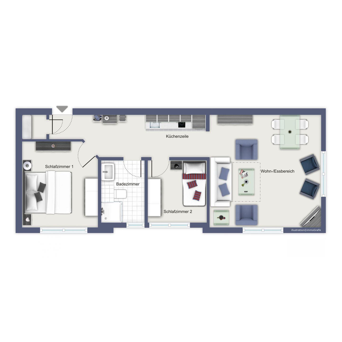 Die Ferienwohnung 115 im Haus Meeresblick ist eine 3-Zimmer-Wohnung für bis zu 4 Personen.
