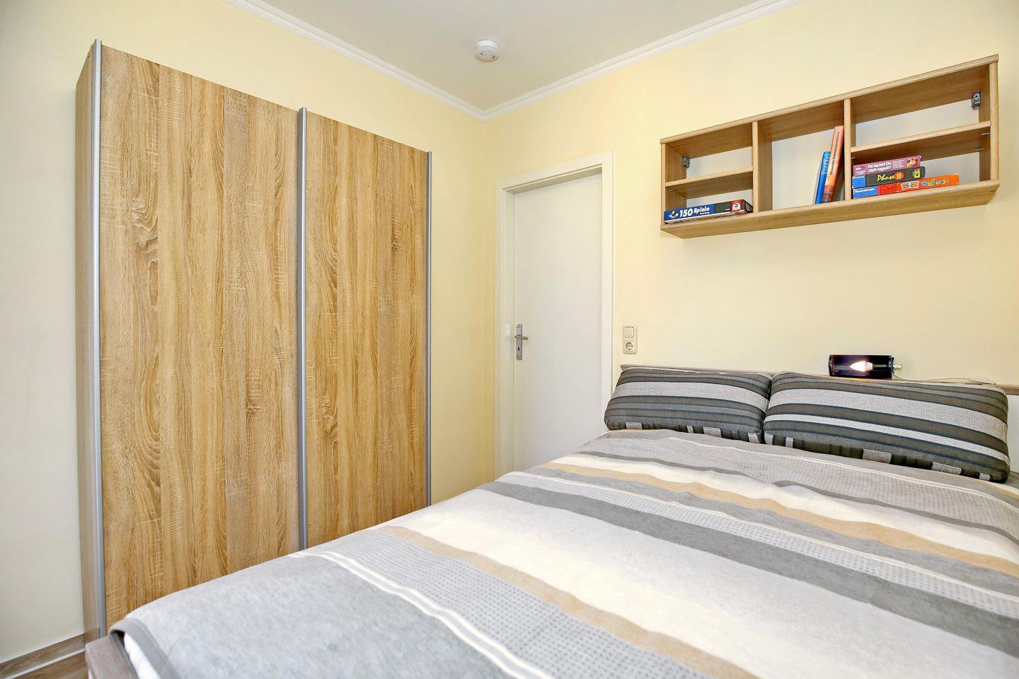 Im 1. Schlafzimmer erwartet dich ein Doppelbett (2 x 90 x 200 cm) mit verstellbarem Lattenrost und im 2. Schlafzimmer ein kleines Doppelbett (140 x 200 cm) für deine erholsame Nachtruhe.