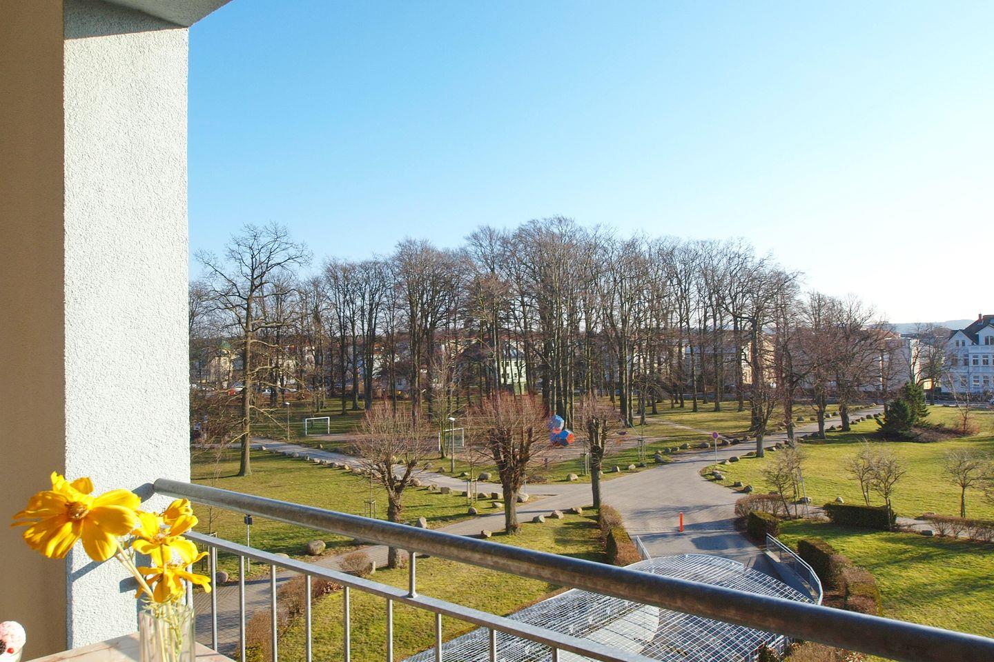Deine gemütliche Ferienwohnung im Ostseebad Kühlungsborn befindet sich im 3. Obergeschoss auf der Südseite des Hauses und verfügt über einen möblierten Balkon mit Blick auf den Park. Mit einer Größe von 42 m² bietet die Wohnung mit einem Wohnbereich, einem Essbereich, einem Schlafzimmer, einer Küchenzeile und einem Badezimmer ausreichend Platz für einen erholsamen Ostseeurlaub. Die Entfernung zum Strand beträgt etwa 50 Meter.