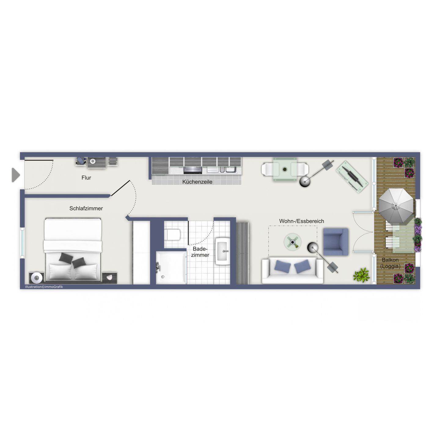 Die Ferienwohnung 309 in der Ferienanlage Meeresblick ist eine 2-Zimmer-Wohnung für bis zu 2 Personen.