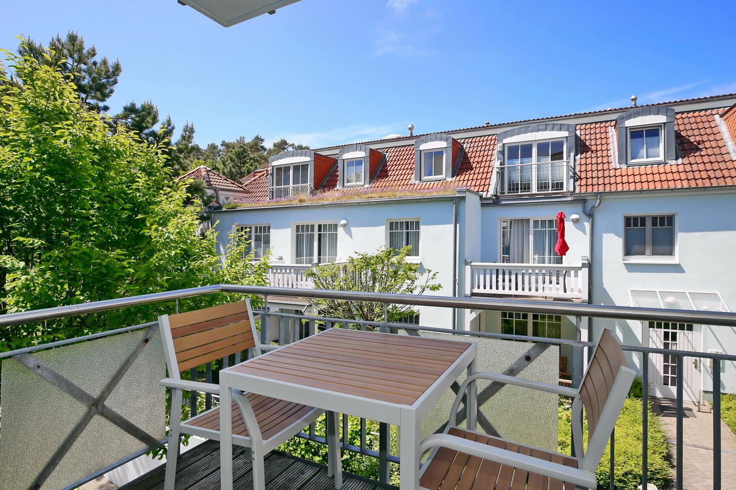 Die Ferienwohnung Nr. 11 in der zentralen Ferienanlage Strandstraße 32 in Kühlungsborn ist eine 2-Zimmer-Wohnung für bis zu 2 Personen. Die Wohnung liegt im 1. Obergeschoss und verfügt über einen Balkon.