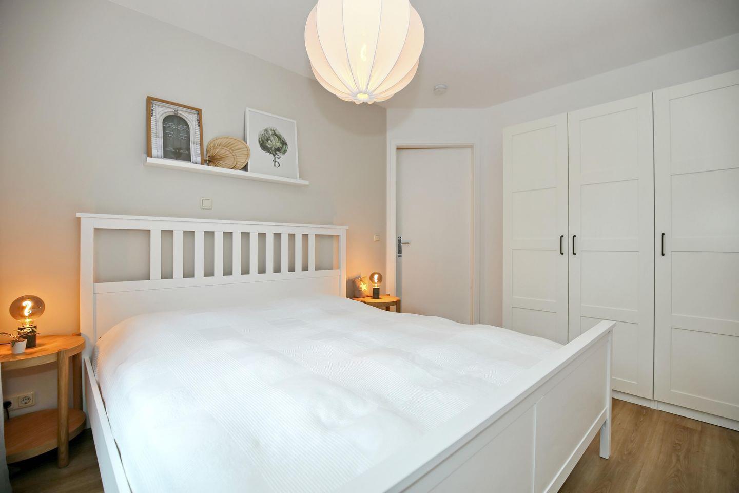 Gleich nebenan kannst du im Schlafzimmer auf dem Doppelbett entspannen. Im Kleiderschrank gibt es ausreichend Stauraum für deine Reiseutensilien. Verdunkle das Zimmer mit Hilfe von Vorhängen.