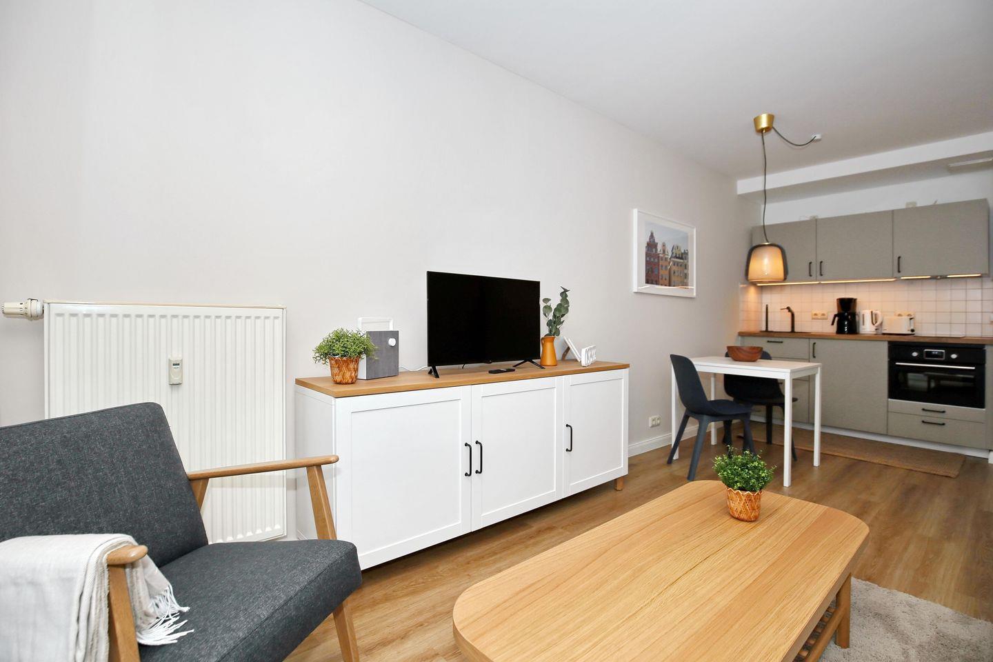 Die Ferienwohnung Nr. 11 in der Ferienanlage „Strandstraße 32“ ist eine 2-Zimmer-Ferienwohnung für bis zu 2 Personen.