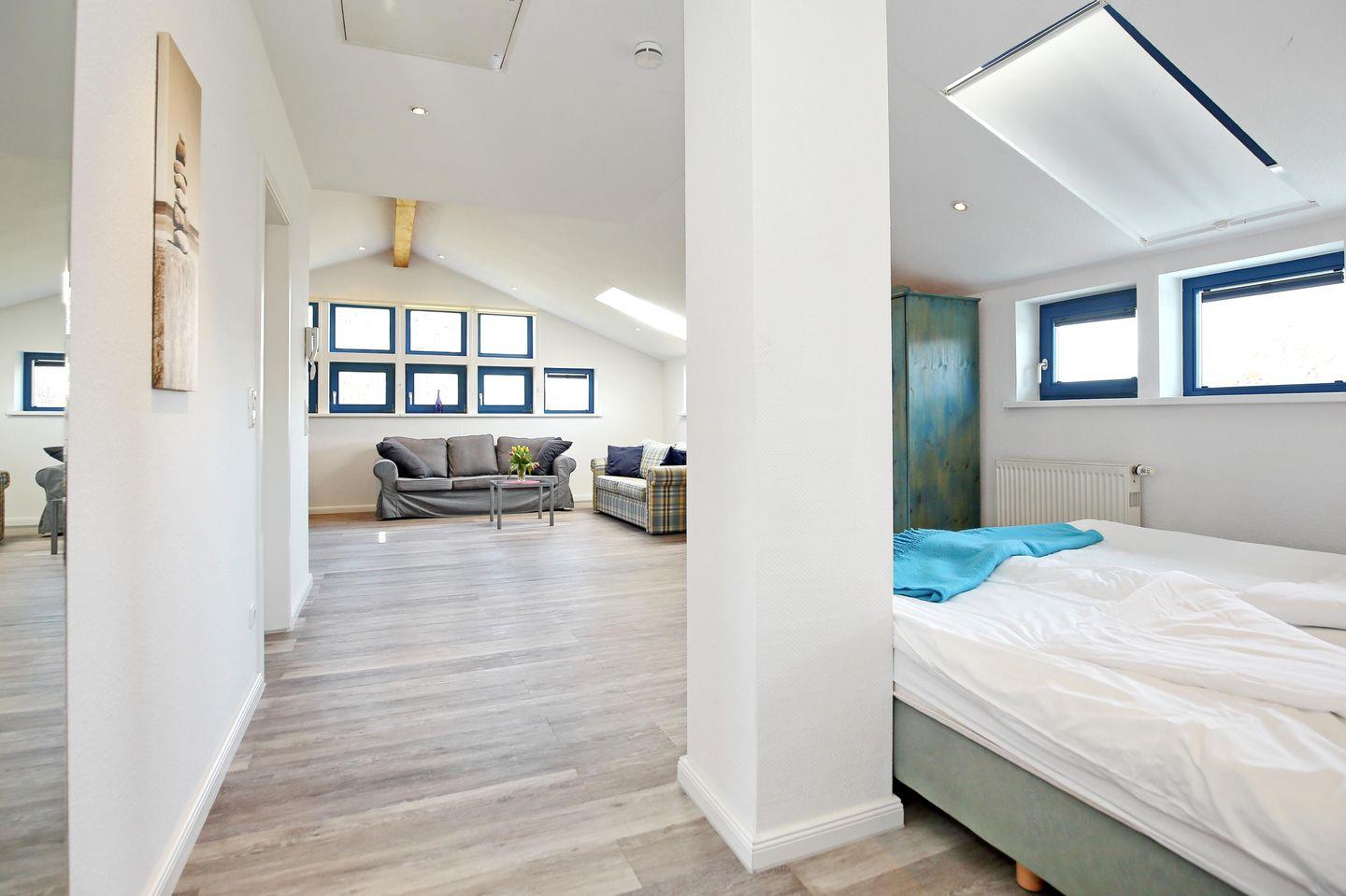 Die moderne und anspruchsvoll eingerichtete Wohnung Nr. 5 ist ein 1-Zimmer-Apartment mit einer Größe von etwa 47 m². Die idyllische Wohnlage ist ausgesprochen ruhig und bietet Erholung pur. Das Grundstück ist sichtgeschützt bepflanzt und besitzt auf den Rasenflächen einen herrlichen Baumbestand, darunter ein großer Kirsch- und ein Walnussbaum. Ein großes Plus ist eine überdachte Tischtennisplatte sowie eine Dartscheibe. Der feinsandige Strand ist nach etwa 650 m erreicht.