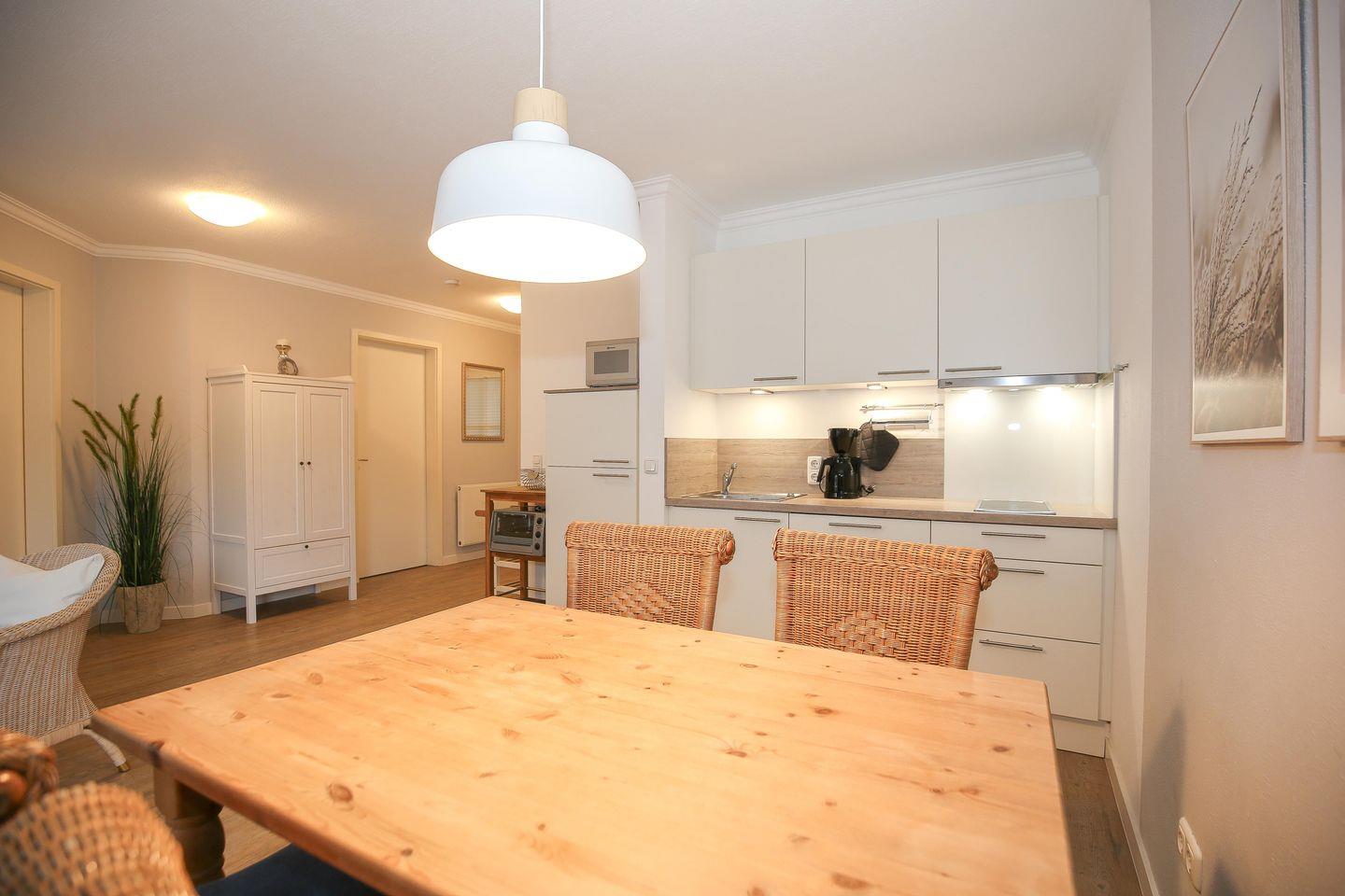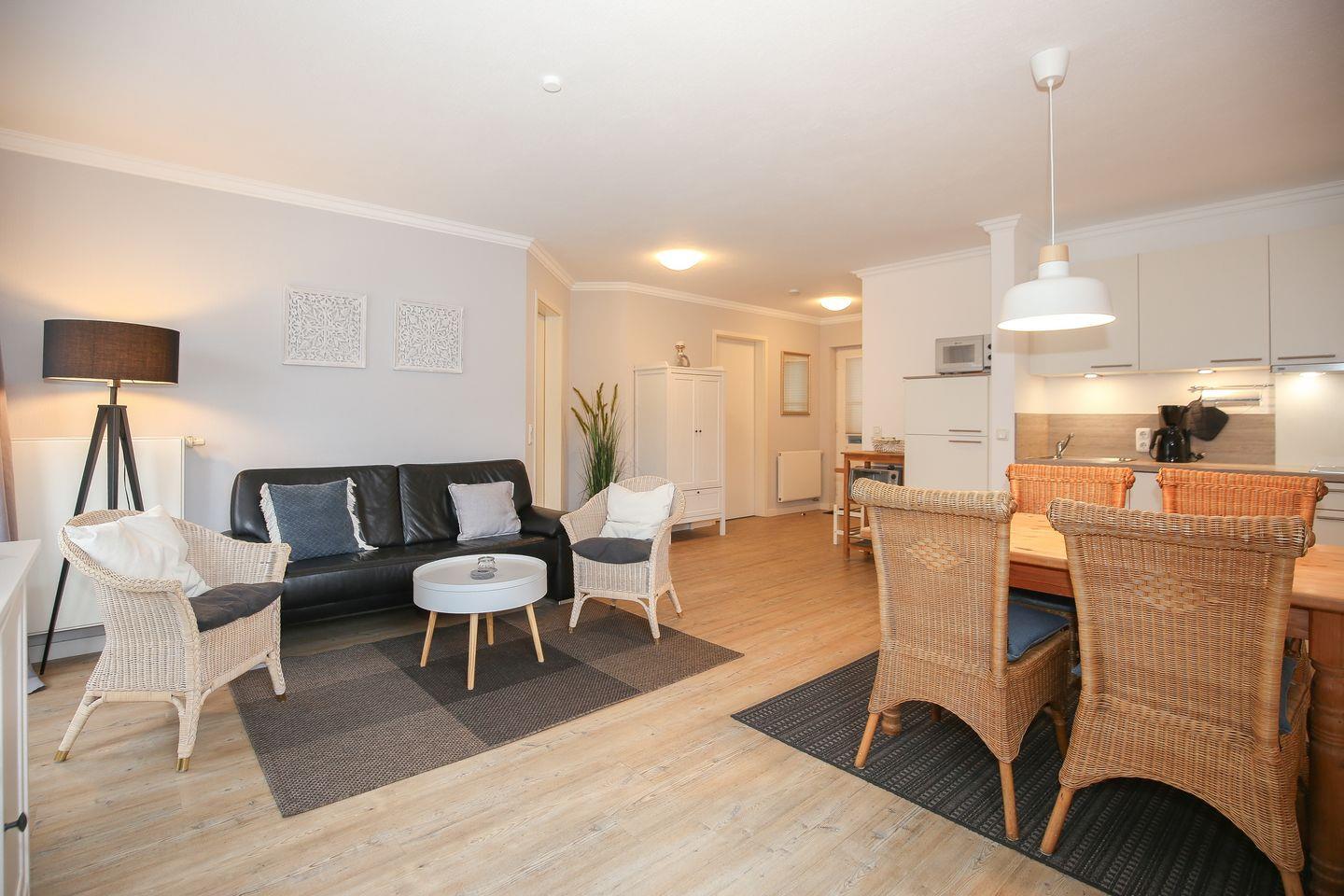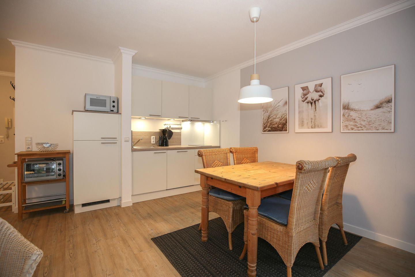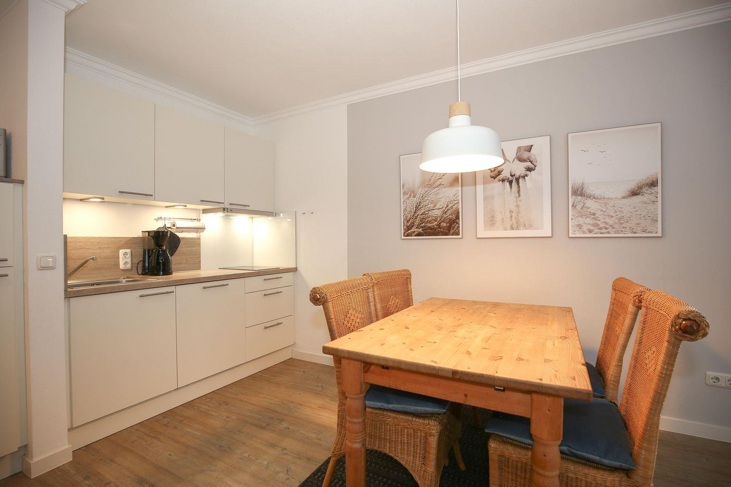 Die Ferienwohnung Nr. 28 in der Ferienanlage „Strandstraße 16“ ist eine 3-Zimmer-Ferienwohnung für bis zu 4 Personen.