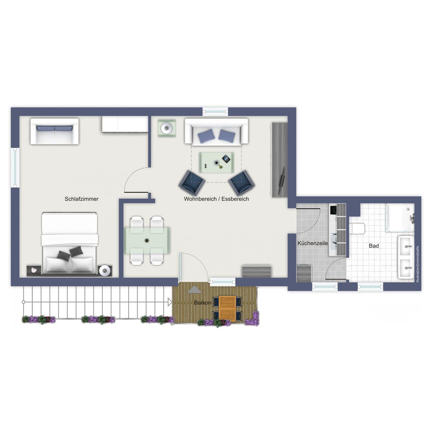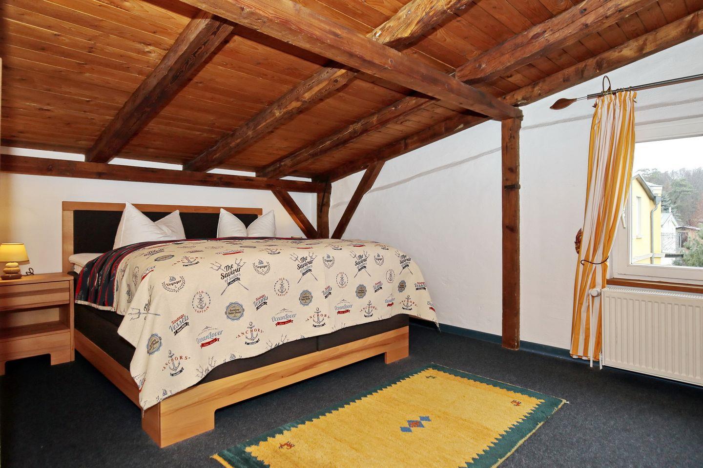 Die 2-Zimmer-Ferienwohnung 15 „Auf den Höfen“ mit 45 m² für bis zu 4 Personen verfügt über einen Balkon. Haustiere sind nicht erlaubt.