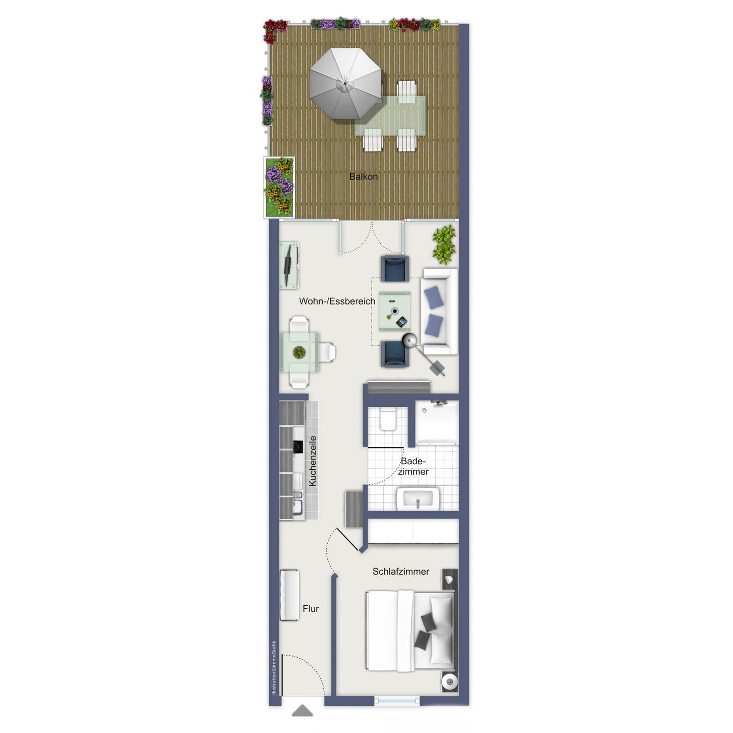 Die gemütliche Ferienwohnung im Ostseebad Kühlungsborn befindet sich im 2. Obergeschoss und verfügt über einen möblierten Balkon mit Teilseeblick. Mit einer Größe von 45 m² bietet dir die Wohnung mit einem Wohnbereich, einem Essbereich, einem Schlafzimmer, einer Küchenzeile und einem Badezimmer viel Platz für einen erholsamen Ostseeurlaub. Die Entfernung zum Strand beträgt etwa 50 Meter.