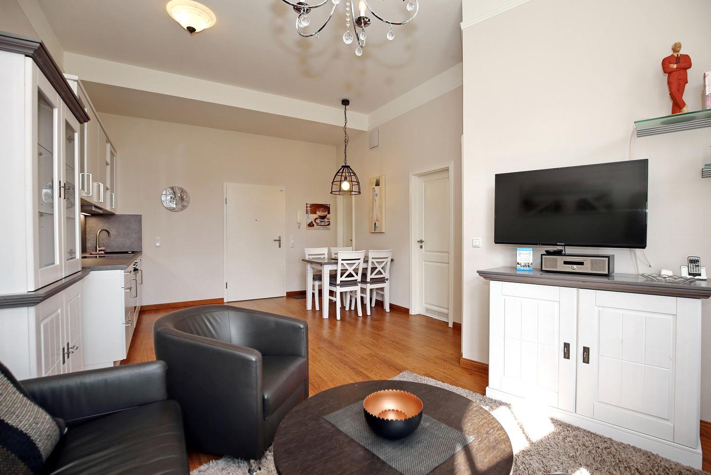Die Ferienwohnung HaP/12 in der Ferienanlage „Haus am Park“ ist eine 2-Zimmer-Wohnung für bis zu 4 Personen.