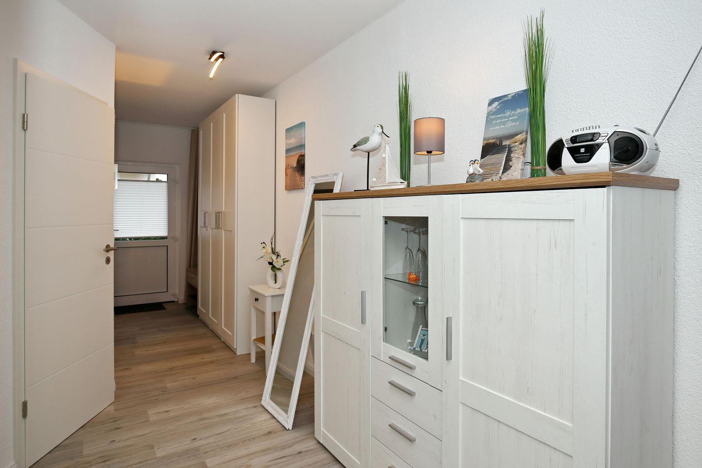 Die im Jahr 2023 komplett renovierte und modernisierte Ferienwohnung bietet dir 34 Quadratmeter Wohnfläche im Erdgeschoss. Dir erwarten ein offener Wohnbereich mit Küchenzeile und Essbereich, eine angrenzende Terrasse, ein separates Schlafzimmer und ein Duschbad. Zum Strand sind es nur etwa 600 Meter.