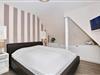Das Schlafzimmer ist mit einem Doppelbett (2 x 80 x 200 cm), einem Einbauschrank und einem Flachbild-TV ausgestattet. Vorhänge und Plissees dienen zum Verdunkeln. Im Schlaf- und Wohnbereich wurde ein Vinylboden verlegt.