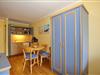 In der Pantry-Küche der Ferienwohnung stehen ein 2-Platten-Cerankochfeld, ein Kühlschrank mit Gefrierfach, eine Mikrowelle sowie eine Kaffeemaschine und ein Toaster zur Verfügung.