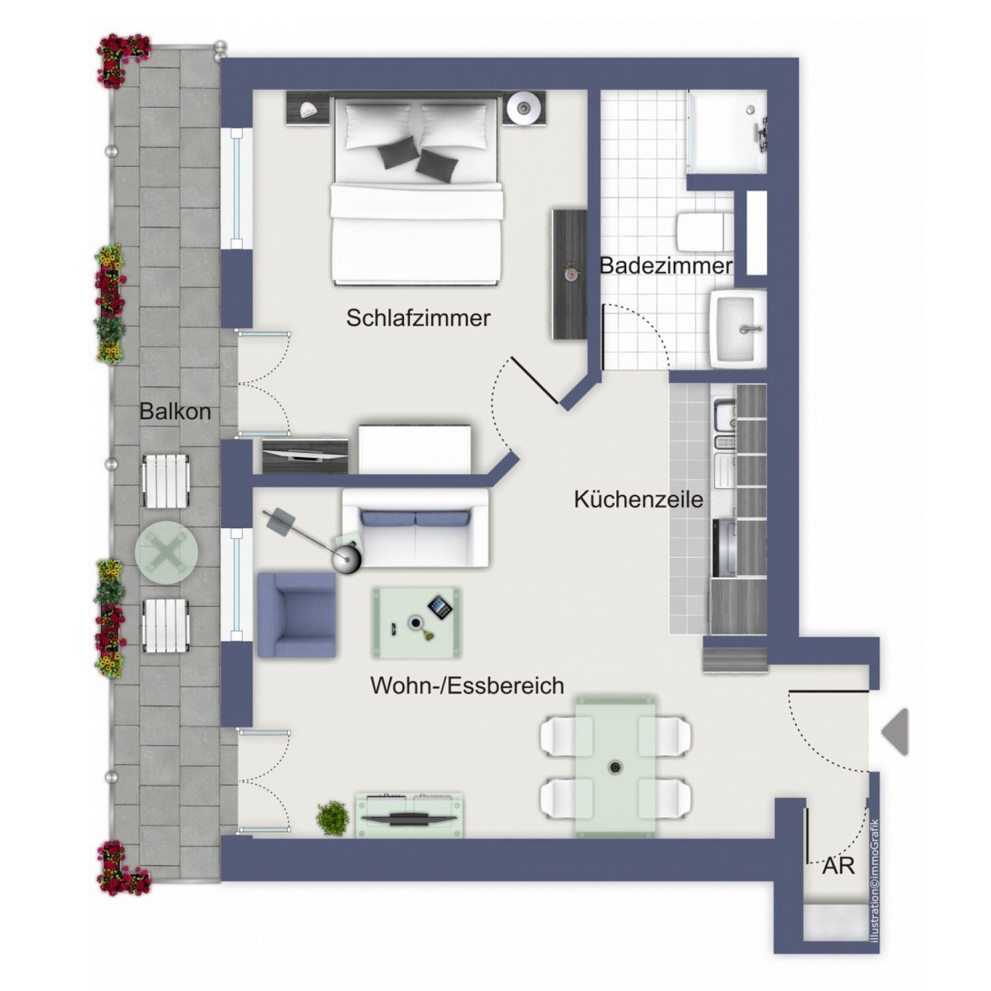 Die Ferienwohnung Nr. 37 im Haus am Park ist eine 2-Zimmer-Wohnung mit einer Größe von etwa 54 m². Die Wohnung befindet sich in der 2. Etage auf der Ostseite des Hauses und ist bequem per Lift zu erreichen. Vom großzügigen Balkon mit den gemütlichen Teakmöbeln hast du einen seitlichen Seeblick sowie einen herrlichen Blick auf den Park. Die Entfernung zum Badestrand beträgt etwa 50 m.