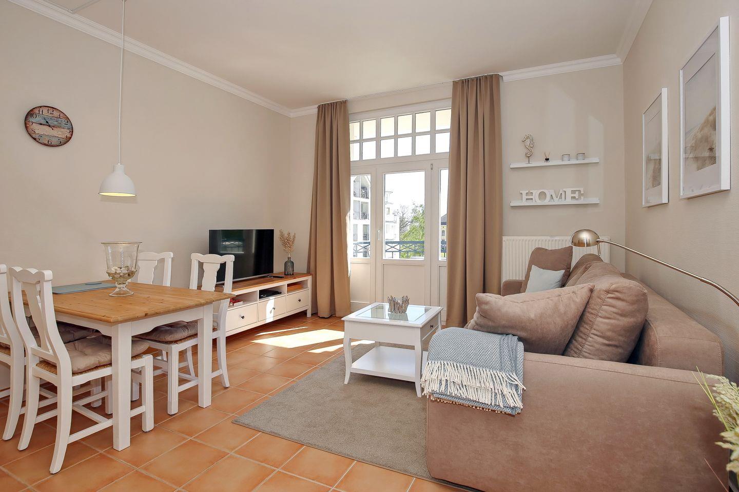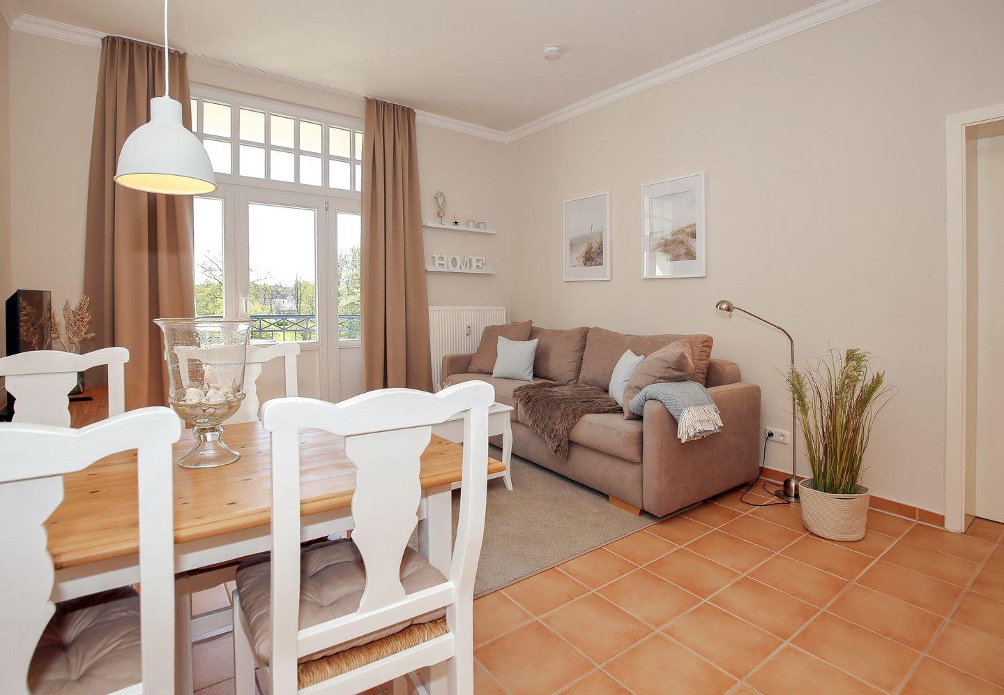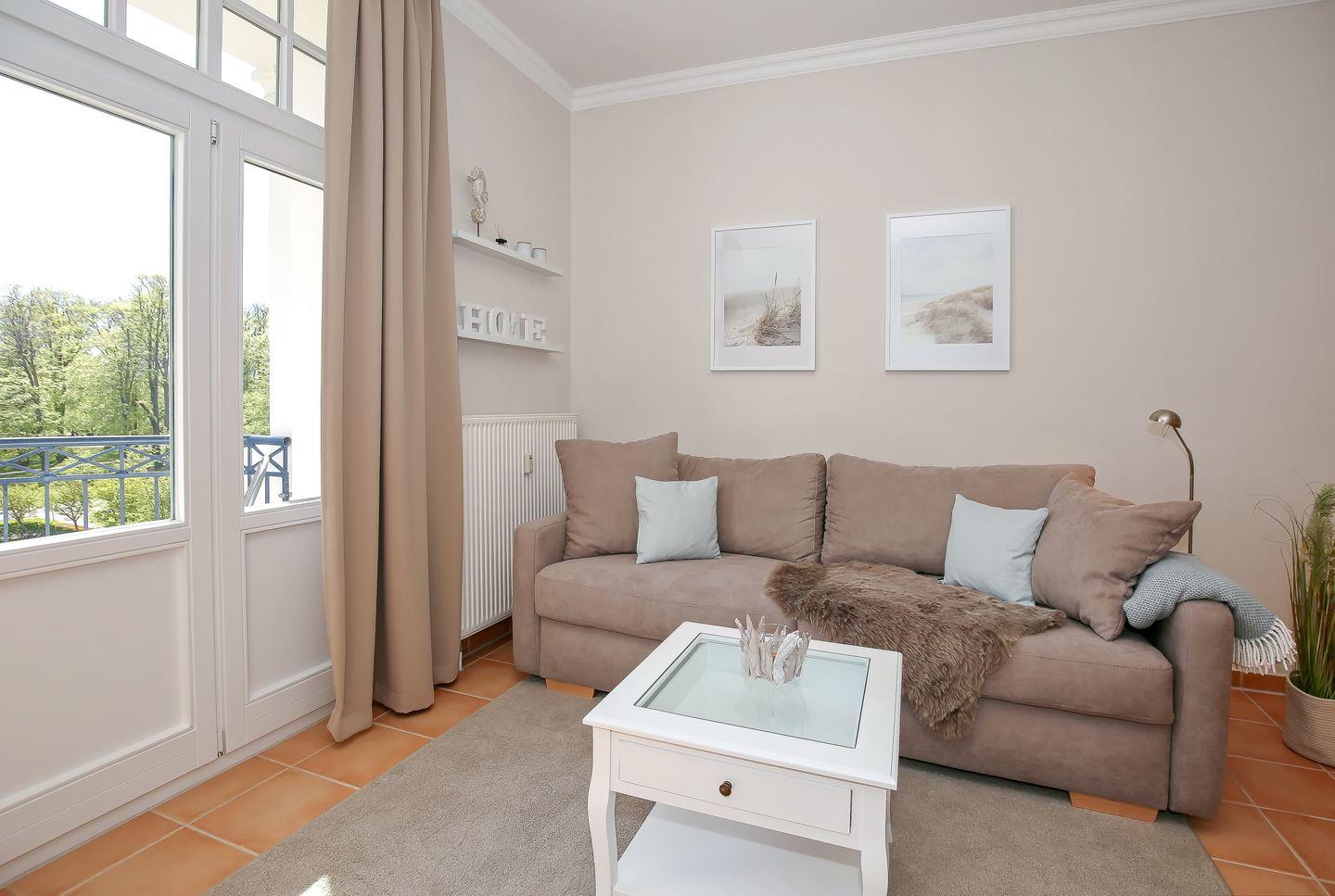 Die Ferienwohnung Nr. 33 in der Ferienanlage Haus am Park ist eine 2-Zimmer-Wohnung für bis zu 2 Personen und einem Kind. Die Wohnung liegt in der 2. Etage auf der Ostseite des Hauses und ist bequem mit Fahrstuhl zu erreichen. Sie verfügt über 2 Balkone, von denen Sie einen Blick auf den Baltic-Park und einen wunderschönen seitlichen Blick auf die Ostsee haben.