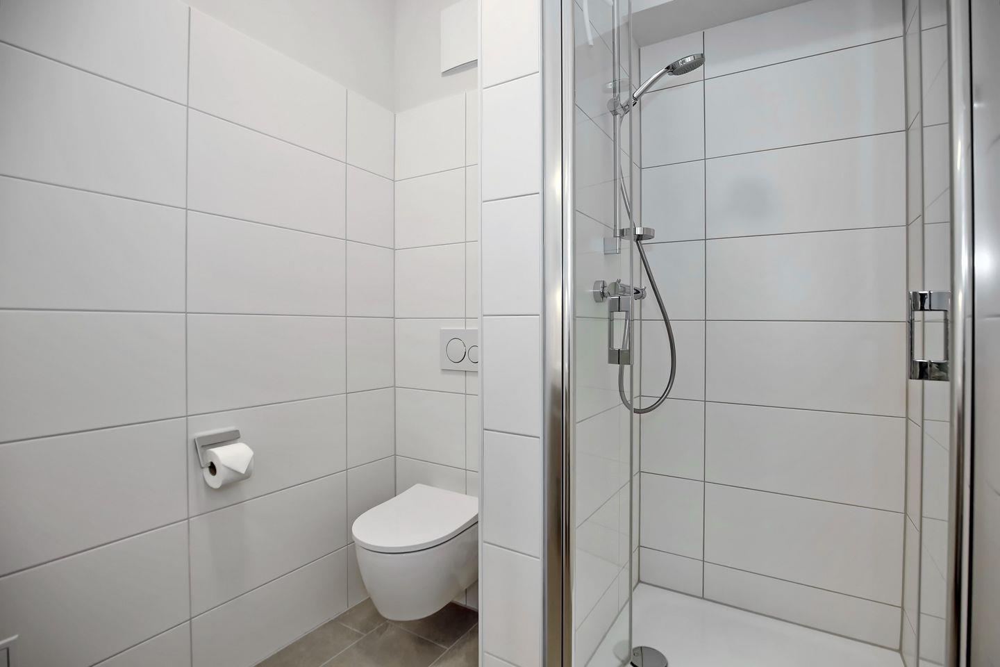 Das Duschbad/WC erstrahlt seit Februar 2024 in neuem Glanz. Es wurde komplett saniert und verfügt über eine geräumige barrierearme Dusche, Handtuchheizkörper, Waschtisch mit genügend Stauraum für Hygieneartikel, großem Spiegel mit indirektem Licht, Föhn und Kosmetikspiegel.