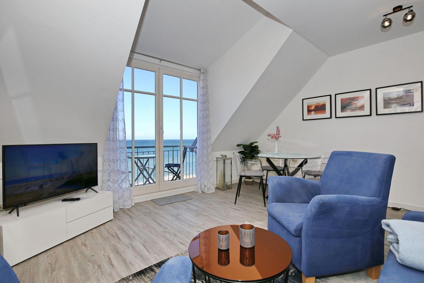 Die Ferienwohnung 515 im Haus Meeresblick ist eine 3-Zimmer-Wohnung, die bis zu 4 Erwachsenen Platz bietet.