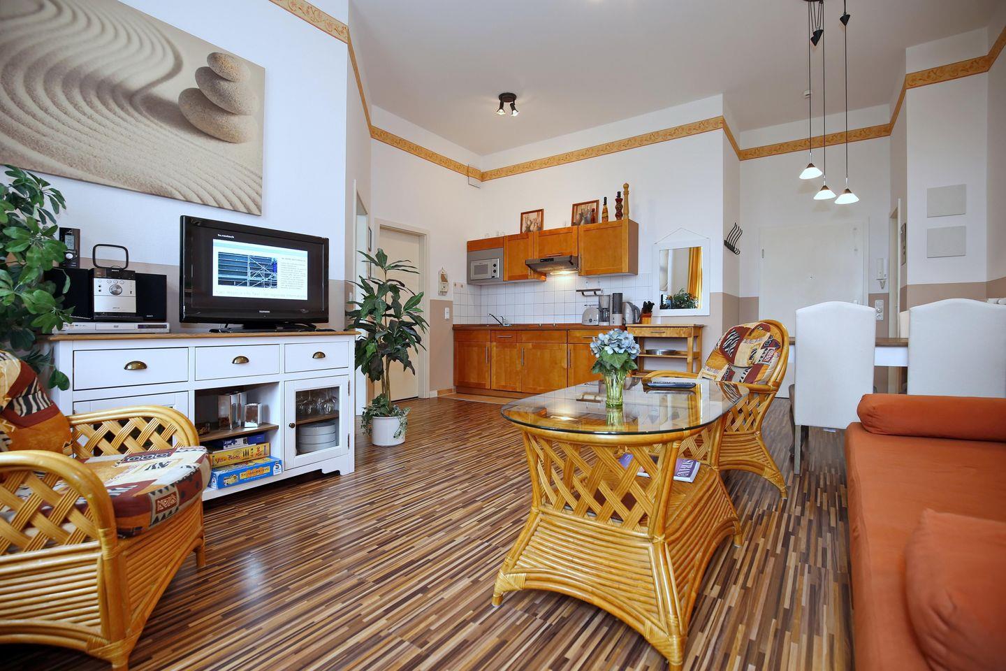 Die Ferienwohnung HaP/16 in der Ferienanlage „Haus am Park“ ist eine 2-Zimmer-Wohnung für bis zu 4 Personen.