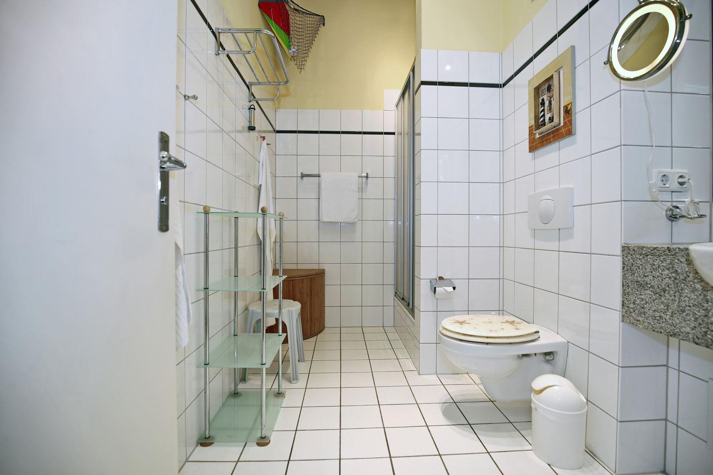 Die Ferienwohnung verfügt selbstverständlich auch über ein gefliestes Duschbad. Für die kleinen Gäste ist ein Kinderhochstuhl vorhanden! In der kompletten Ferienwohnung wurde ein moderner Laminatboden verlegt.