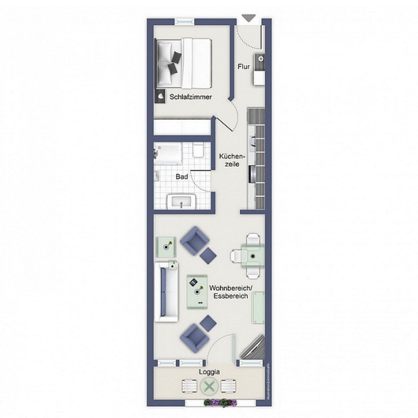 Die Ferienwohnung 122 in der Ferienanlage Meeresblick ist eine 2-Zimmer-Wohnung für bis zu 3 Personen.