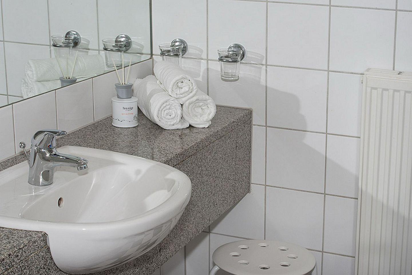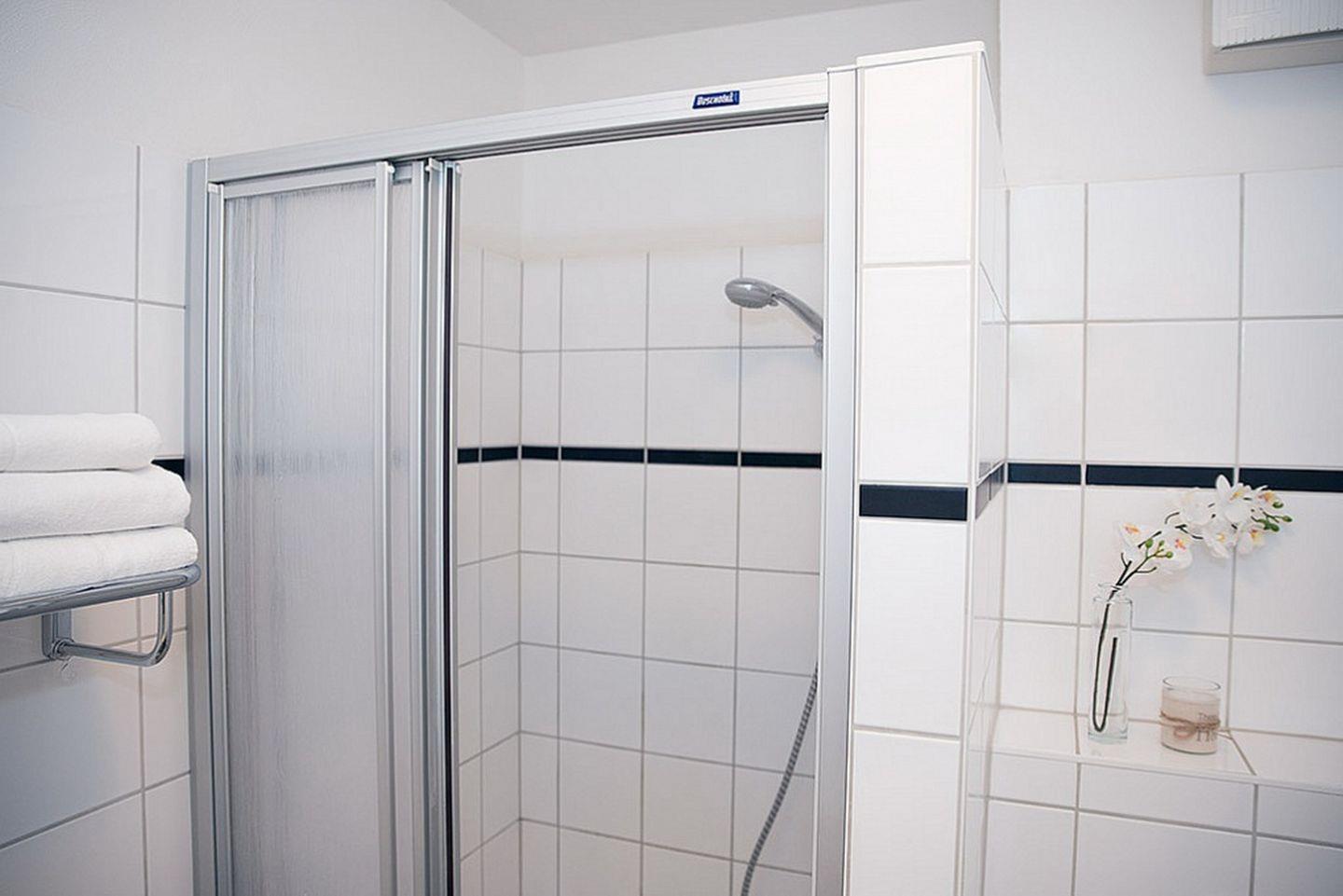 Die Ferienwohnung verfügt über ein gefliestes Duschbad mit WC. Für deine Waschutensilien findest du genügend Platz auf dem großzügigen Waschtisch. Ein Föhn und ein Kosmetikspiegel komplettieren die Ausstattung des Bades. Im gesamten Wohn-, Flurbereich und Schlafzimmer wurde ein hochwertiger Laminatboden verlegt. In dieser Nichtraucherwohnung sind Haustiere erlaubt.