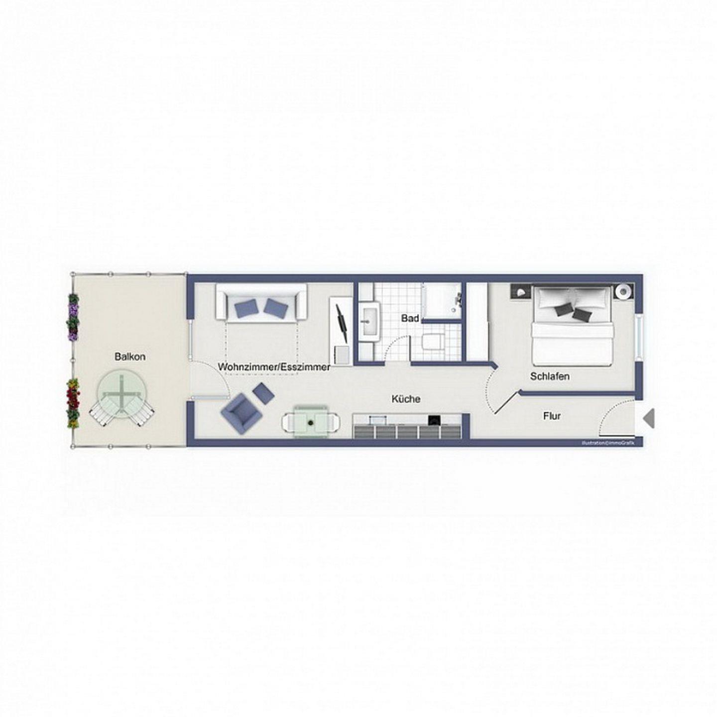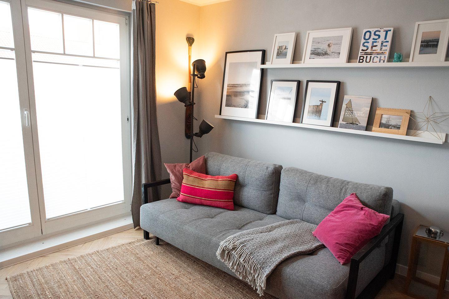 Die moderne und hell gestaltete Wohnung befindet sich im 2. Obergeschoss, auf der Westseite des Hauses und verfügt über einen möblierten Balkon mit Teilseeblick. Mit einer Größe von 44 m² bietet dir die Wohnung mit einem Wohnbereich, einem Essbereich, einem Schlafzimmer, einer Küchenzeile und einem Badezimmer viel Platz für einen erholsamen Ostseeurlaub. Diese