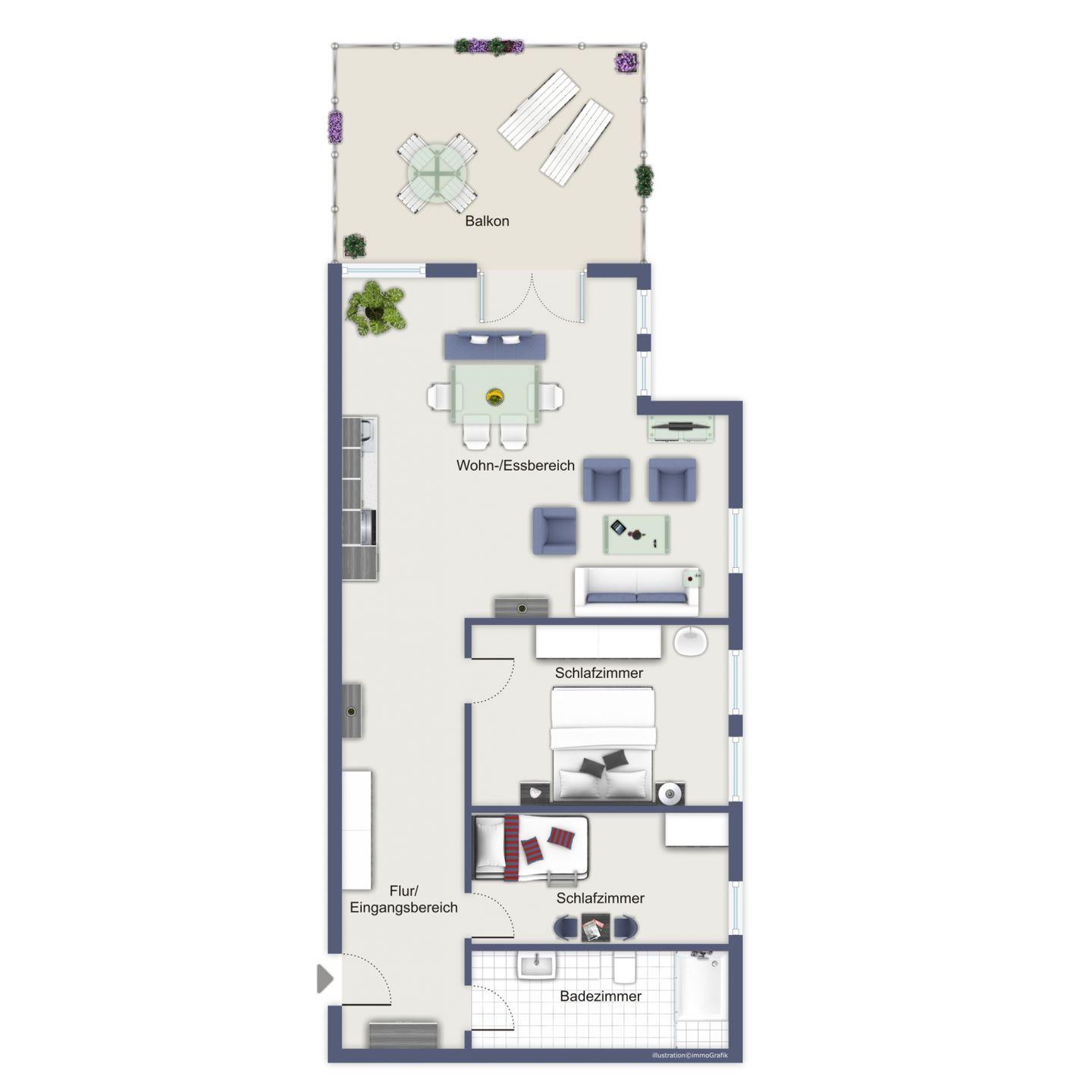 Die Ferienwohnung verfügt über ein sehr modernes gefliestes Duschbad mit ebenerdiger Dusche und einem WC. Für deine Waschutensilien findest du genügend Platz auf den Ablageflächen. Ein Föhn komplettiert die Ausstattung des Bades. In den Schlafzimmern wurde Vinylboden in Holzoptik verlegt, in allen anderen Räumen findest du Fliesen vor. In dieser Nichtraucherwohnung sind Haustiere nicht erlaubt. Das Grillen ist im Interesse der Mitbewohner des Hauses Meeresblick auf dem Balkon nicht gestattet.