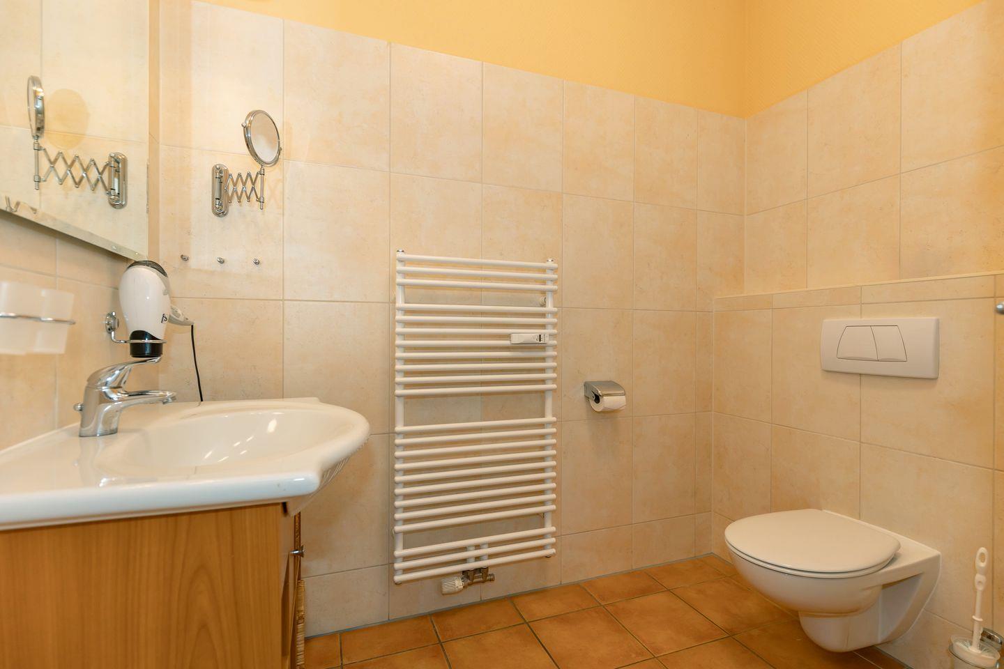 Die Ferienanlage verfügt über einen Fahrstuhl, eine Münzwaschmaschine und –trockner sowie über einen abschließbaren Abstellraum für eure Fahrräder. Ein Tiefgaragenstellplatz (max. Durchfahrtshöhe 2,00 m) kann auf Wunsch gegen Aufpreis hinzugebucht werden. Bademäntel erhaltet ihr gegen eine kleine Leihgebühr in unserem Service-Büro. Hunde sind in diesem Apartment gestattet.