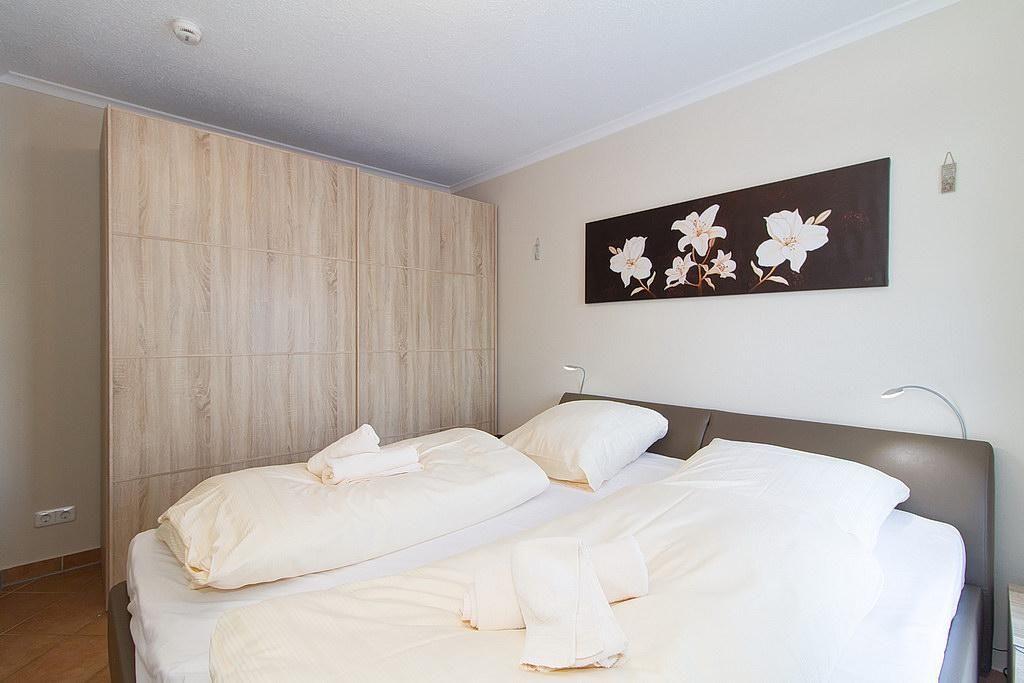 In dem geräumigen Schwebetüren-Kleiderschrank befindet sich ein Bügeleisen mit Bügelbrett sowie ein Wäscheständer. Ein Kinderbett kann gegen Entgelt aufgestellt werden und auf Wunsch könnt ihr einen Hochstuhl hinzubuchen.