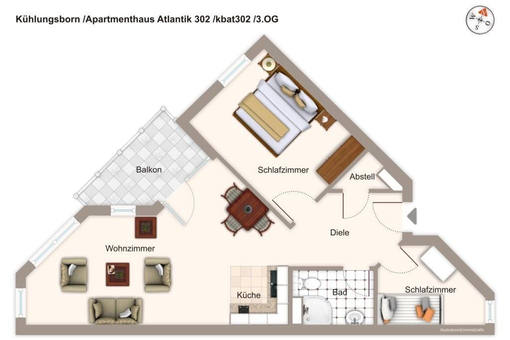 Im „Apartmenthaus Atlantik“ in Kühlungsborn findet ihr Ferienwohnungen in direkter Strandlage. Das Apartment mit 3 Zimmern auf 60 qm und mit einem Balkon bietet für 4 Personen viel Platz zum Erholen an der Ostsee.