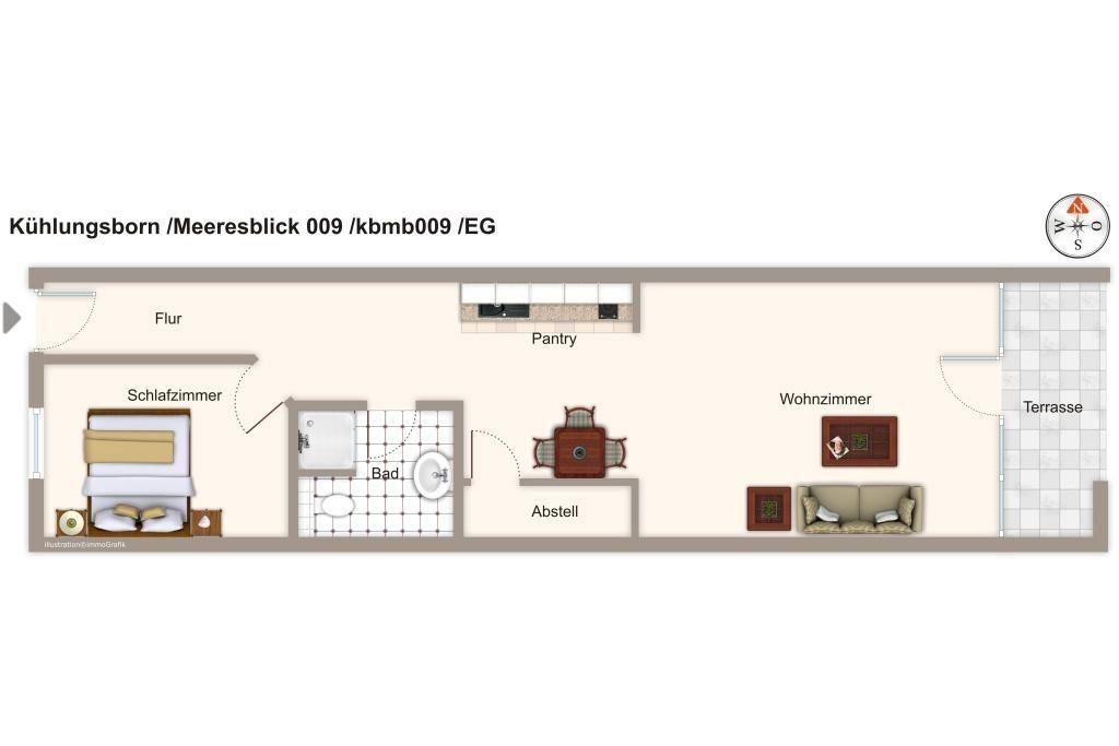 Das 41 m² große 2-Zimmer-Apartment ist für bis zu 4 Personen geeignet. Besonders hervorzuheben ist die hervorragende Strandlage der Apartmentanlage.