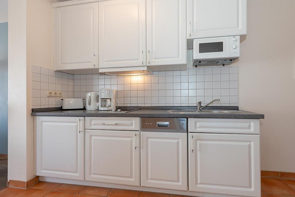 Das gemütliche Nichtraucher-Apartment verfügt über kostenfreies WLAN und eine voll ausgestattete offene Küche mit Geschirrspüler, Ceranfeld, Mikrowelle, Wasserkocher, Kaffeemaschine, Toaster und Tiefkühlfach. Der kombinierte Wohn- und Essbereich verfügt über eine TV-HiFi-Anlage mit Flachbild-TV, DVD-Player und eine Doppelschlafcouch. Sowohl der Esstisch, als auch der behagliche Sitzbereich bieten genügend Platz, um schöne Stunden beim Frühstück oder nach einem ereignisreichen Tag am Strand zu verbringen. Von hier aus habt ihr einen wunderschönen, uneingeschränkten Blick auf den Park. Das Apartment verfügt über zwei separate Schlafräume. Im ersten Schlafzimmer steht euch ein großes Doppelbett (2 x 0,90 x 2,00) zur Verfügung, ein Etagenbett (2 x 0,90 x 2,00) befindet sich im zweiten Schlafzimmer. Ein Kinderbett kann gegen Entgelt aufgestellt werden und auf Wunsch könnt ihr einen Hochstuhl hinzubuchen.