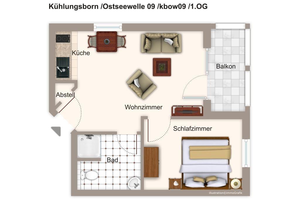 Das Nichtraucher-Apartment verfügt über WLAN, eine voll ausgestattete offene Küche mit einer Mikrowelle, einem Toaster, einer Kaffeemaschine, einem Wasserkocher, einem Mixer und einer Geschirrspülmaschine. Im kombinierten Wohn- und Essbereich stehen euch ein ein Flachbild-TV, DVD-Player, HiFi-Anlage und eine Schlafcouch (1,40 x 1,90 m) zur Verfügung. Sowohl der Esstisch, als auch der Sitzbereich bieten genügend Platz, um schöne Stunden beim Frühstück oder nach einem ereignisreichen Tag am Strand zu verbringen. Im Apartment findet ihr zudem Bücher für die Urlaubslektüre. Die Wohnung verfügt über ein separates Schlafzimmer mit Doppelbett( 2 x 0,90 x 2,00 m). Die Wohnung verfügt über einen nördlich gelegenen und überdachten Balkon mit Gartenmöbeln vom dem aus ihr dem Meeresrauschen der nahen Ostsee lauschen könnt.