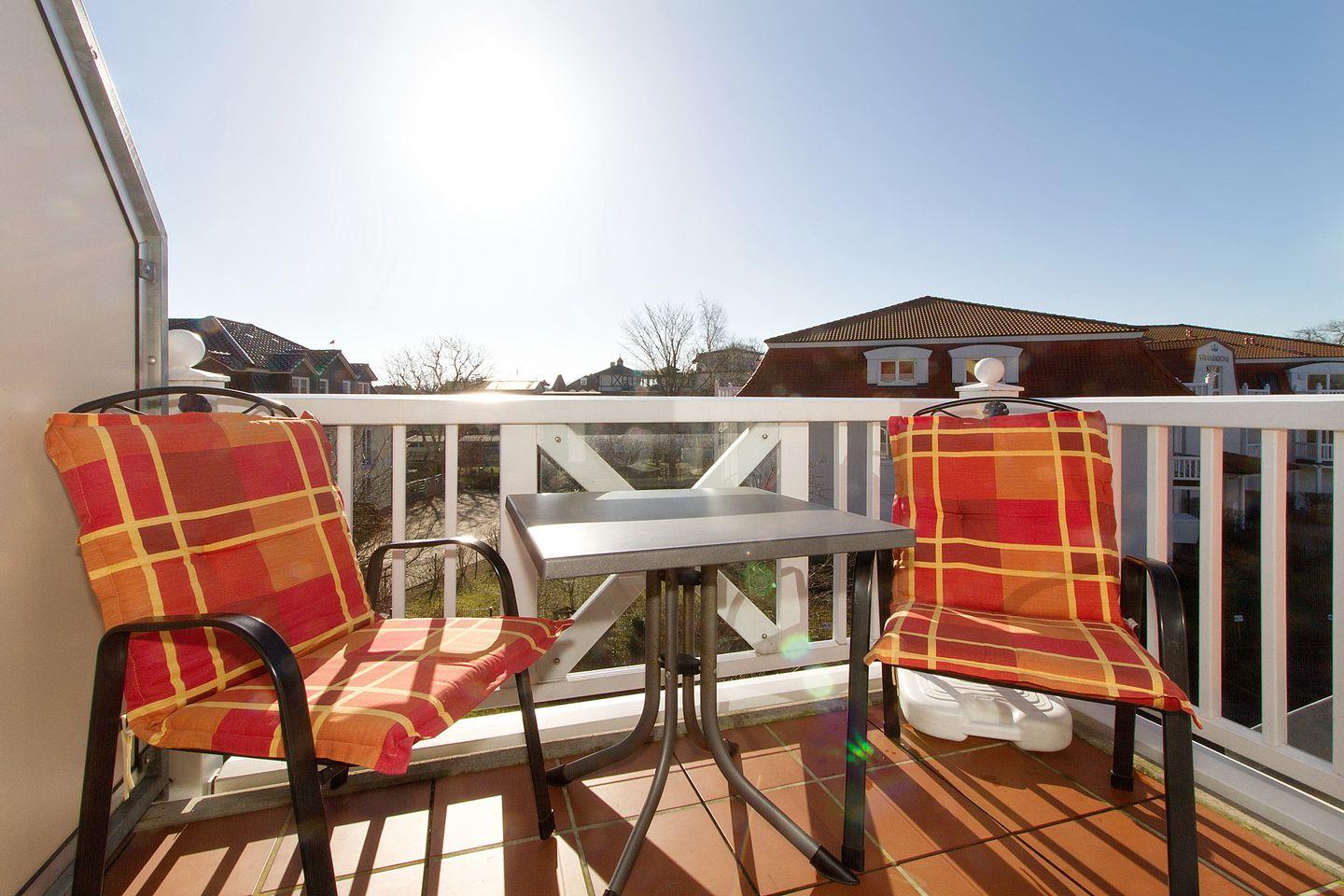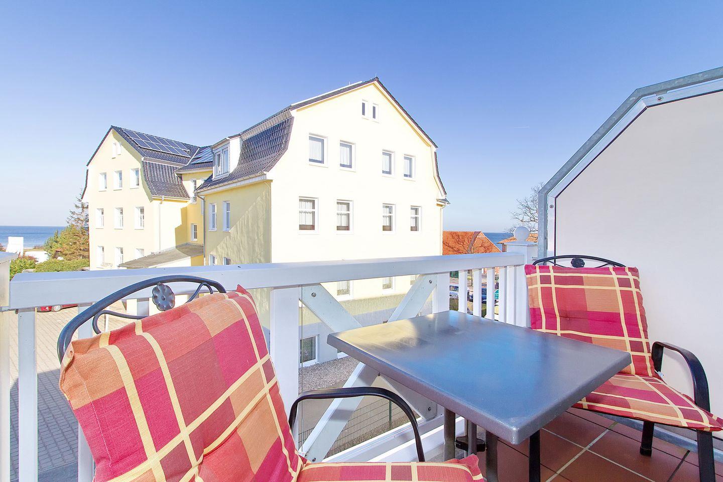 Das 58 m² große 3-Zimmer-Apartment bietet Platz für bis zu 4 Personen. Besonders hervorzuheben ist die Lage der Apartmentanlage in direkter Nähe zum weißen Ostseestrand und die zwei Balkone der Wohnung. Von dem nach Nord-West gelegenen Balkon könnt ihr bis zur nahegelegenen Ostsee blicken.