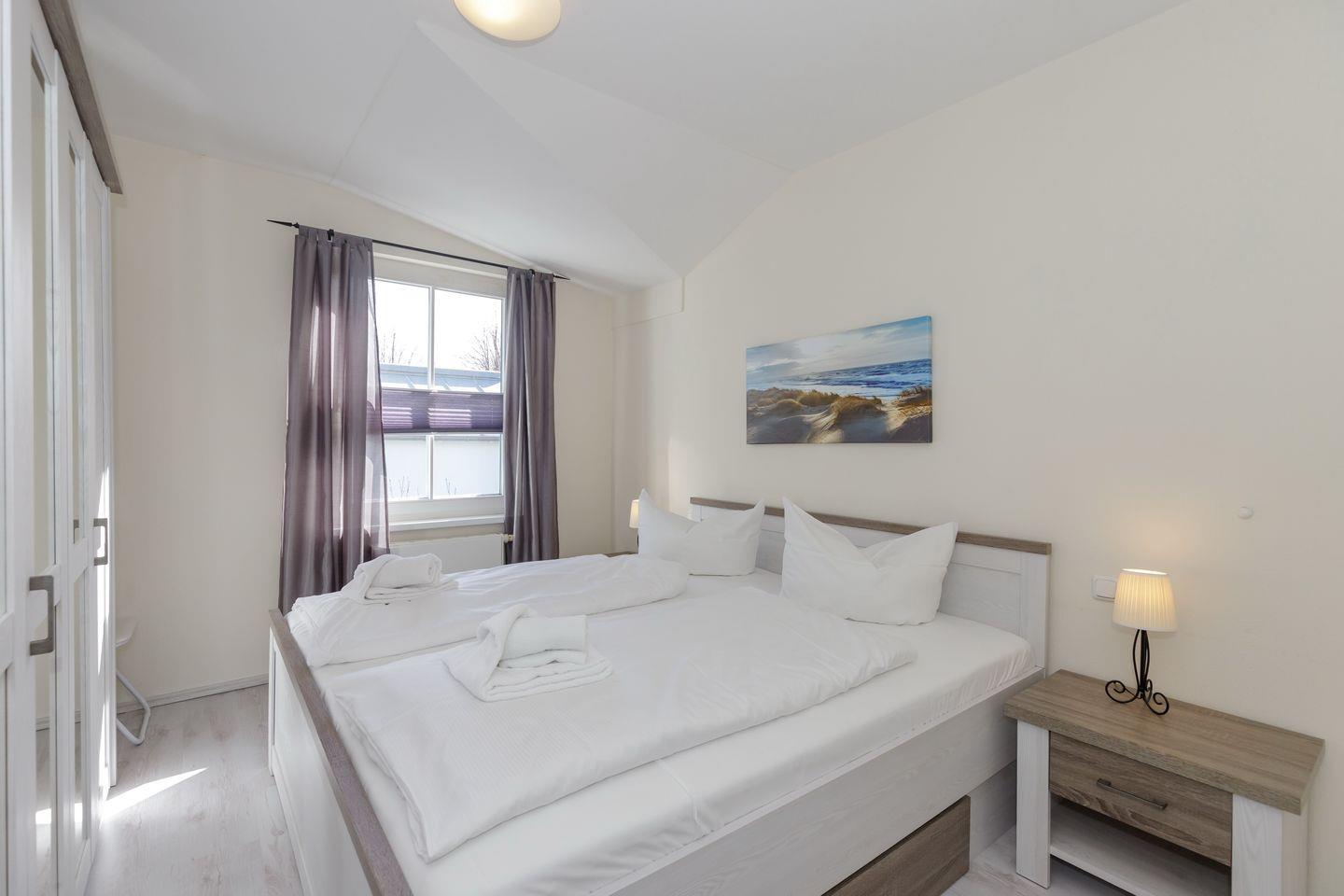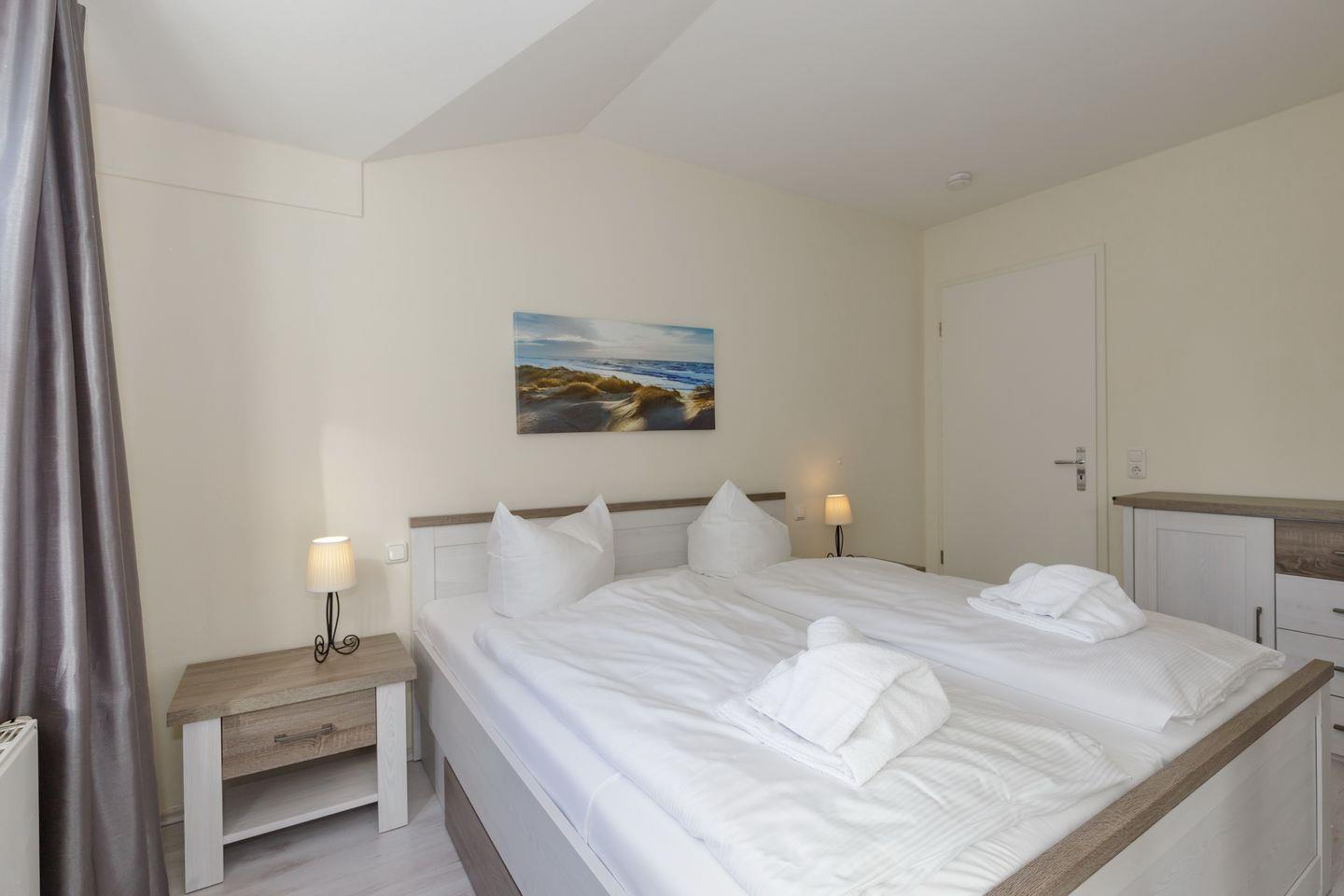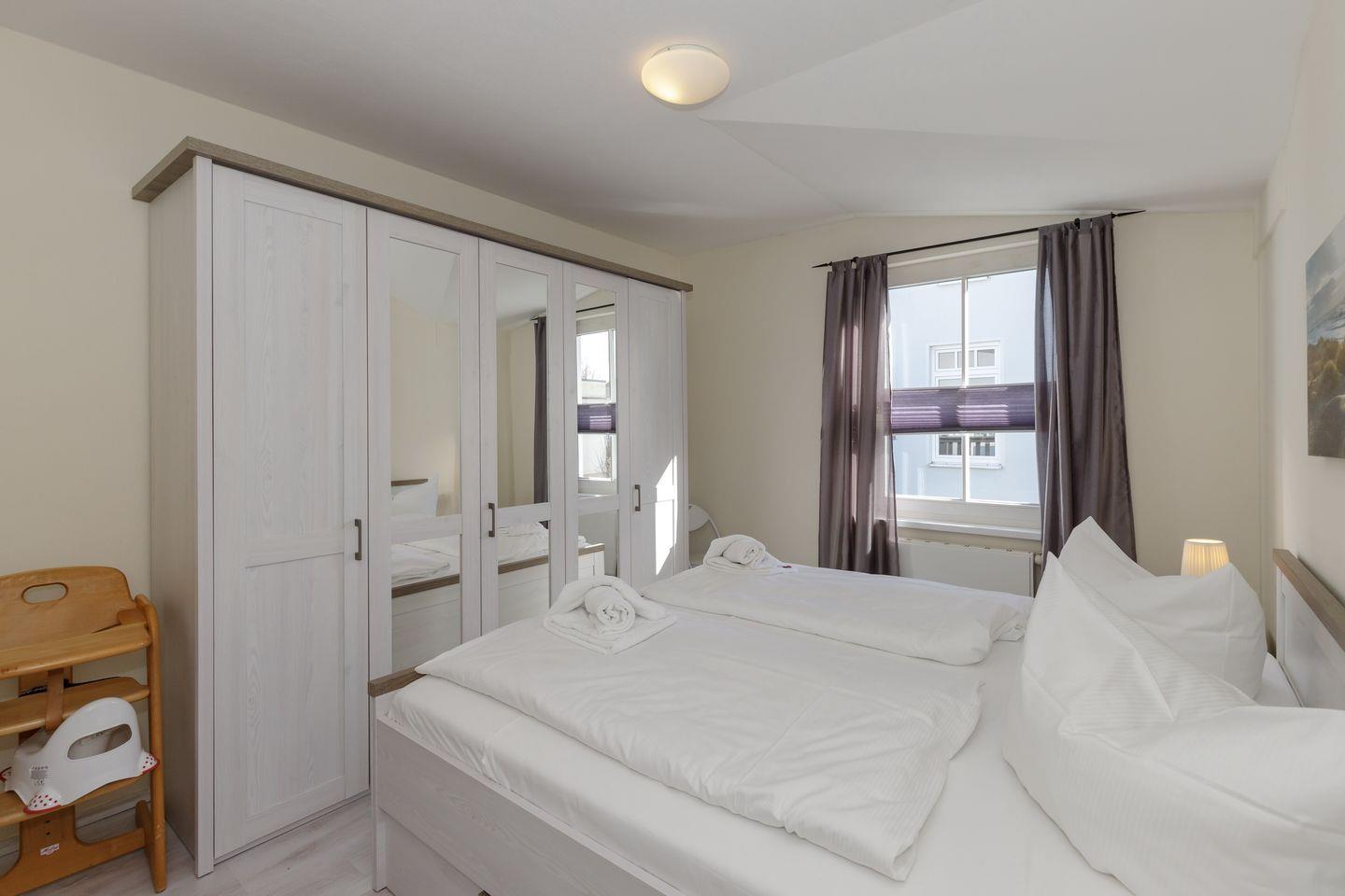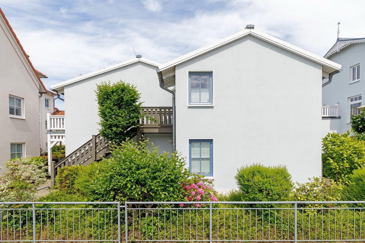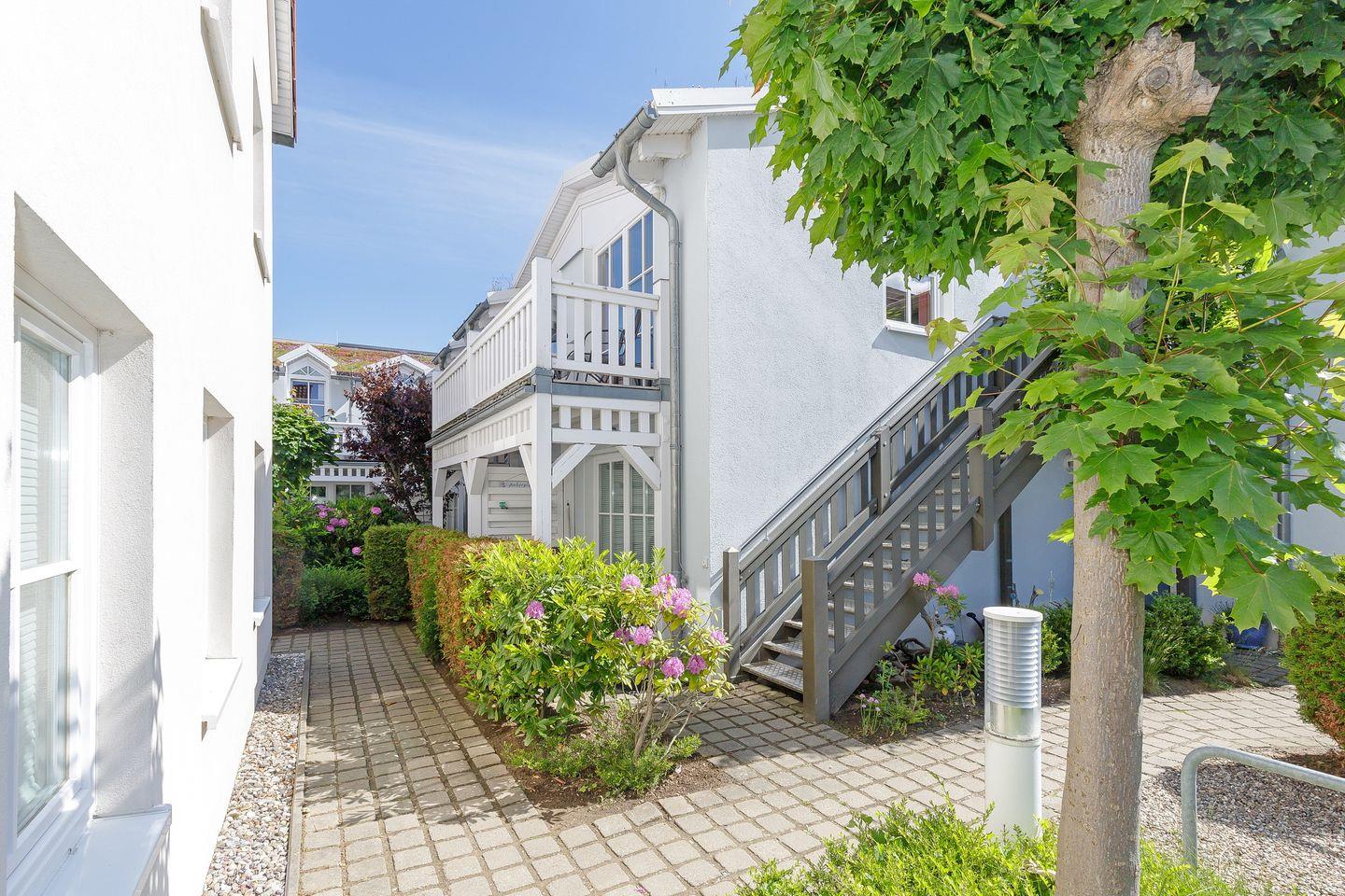 Im 1. Obergeschoss befindet sich die Ferienwohnung, auf der Westseite der Apartmentanlage „Strandstraße 16“, die nahe des Zentrums mit zahlreichen Restaurants und Einkaufsmöglichkeiten liegt – Strand und Seebrücke sind nur 800 Meter entfernt.